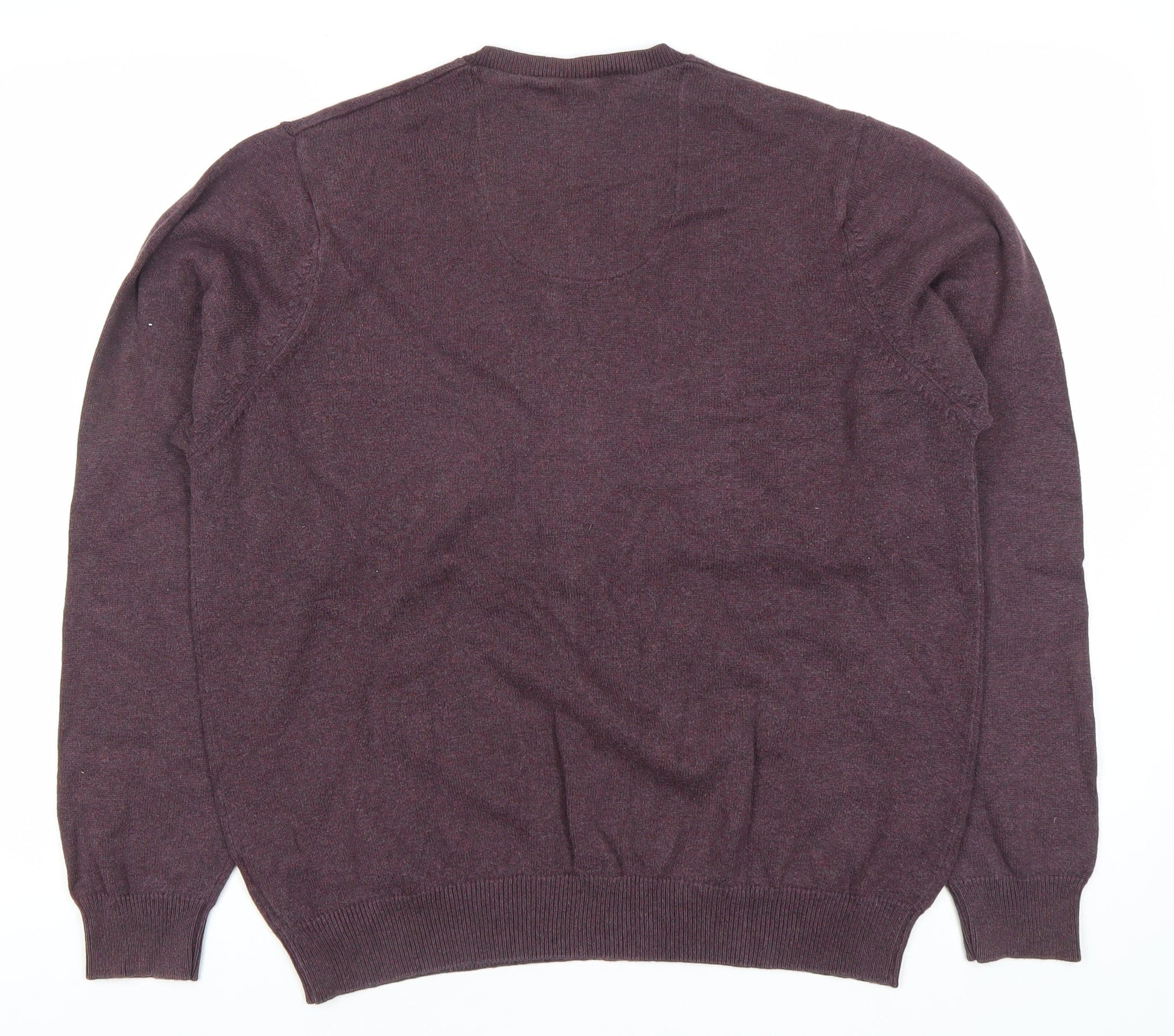 Marks and Spencer Men's Purple Cotton V-Neck Jumper L Regular Fit