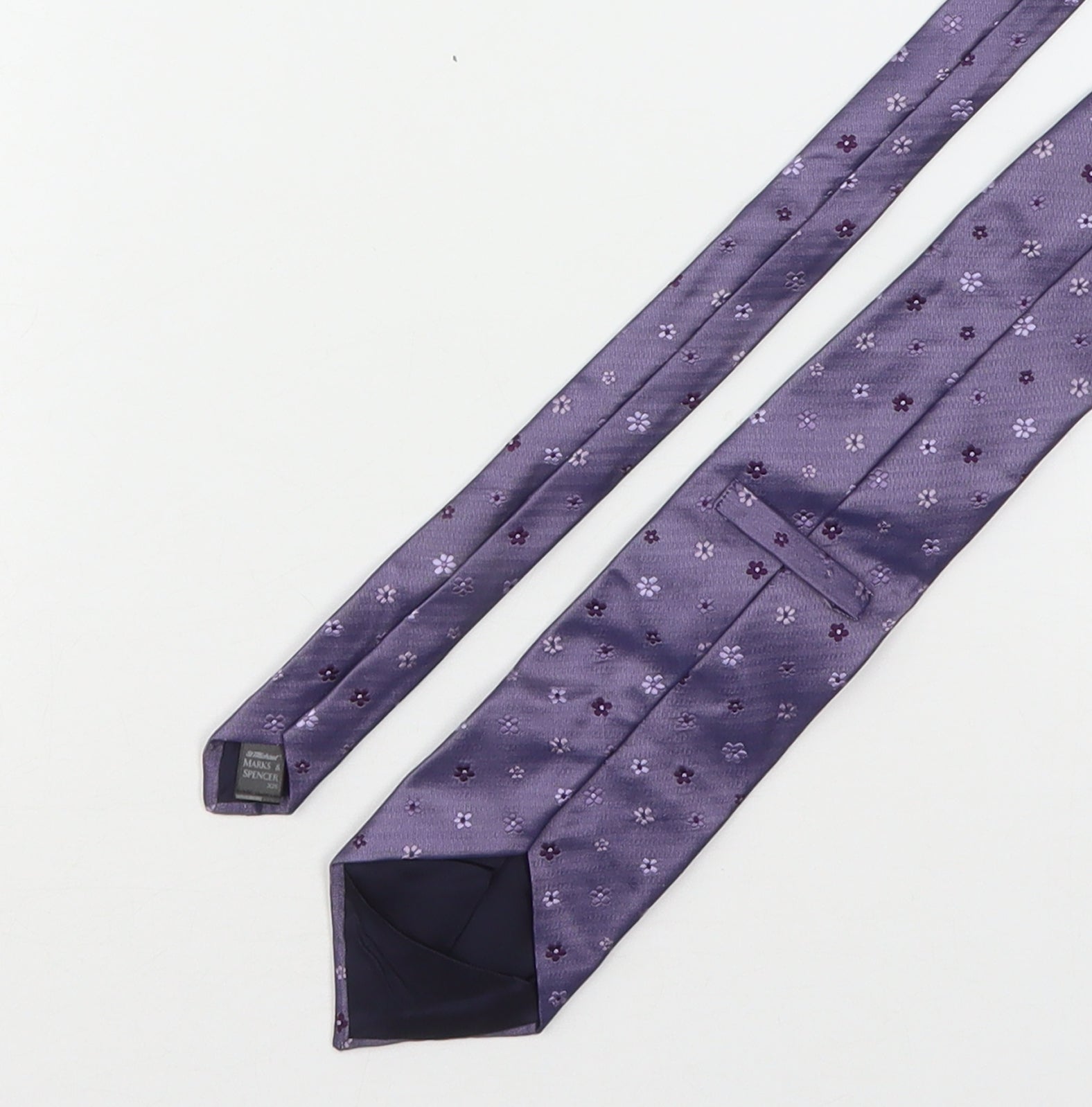 Marks and Spencer Mens Purple Floral Silk Pointed Tie One Size