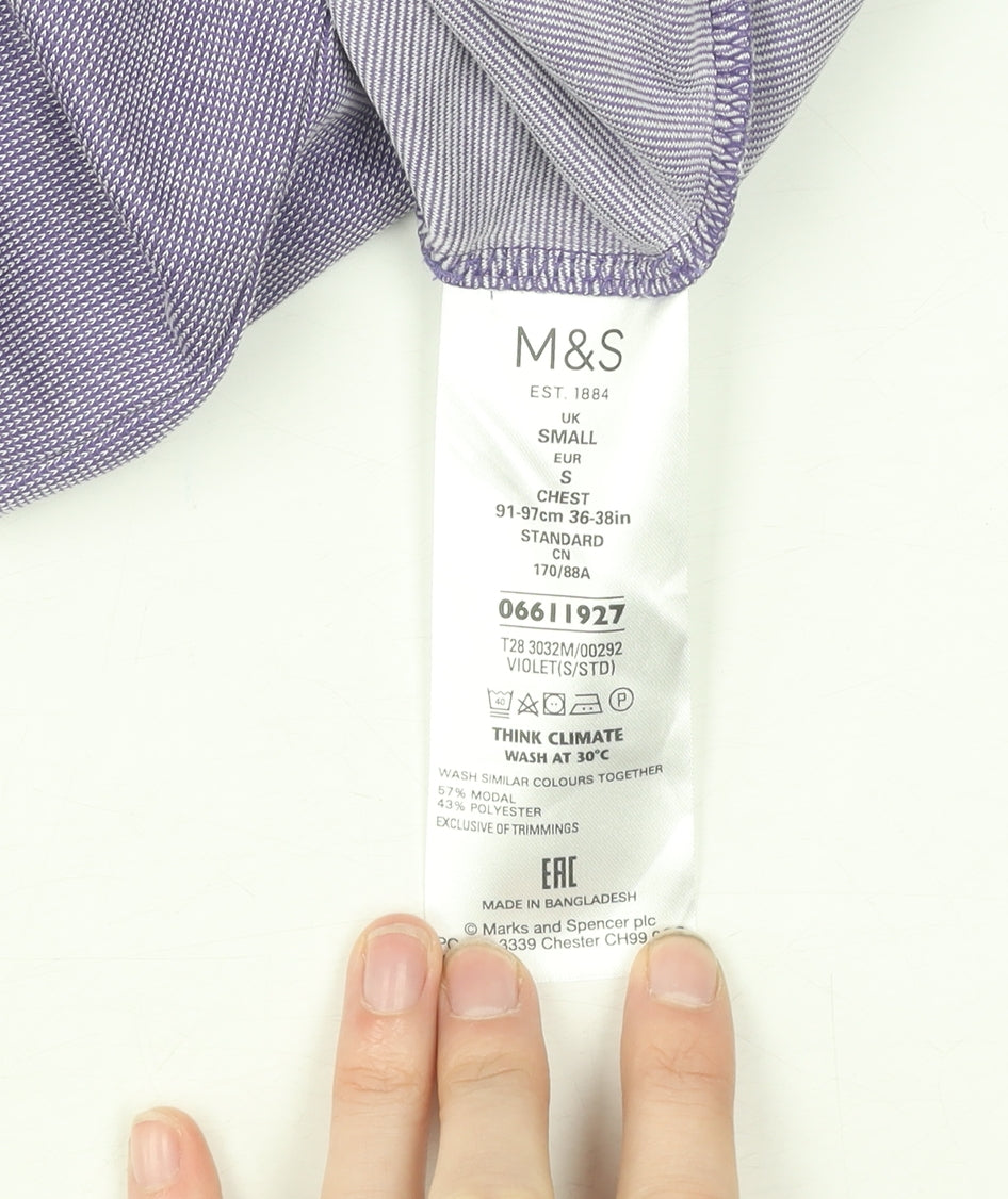 Marks and Spencer Men's Purple Polo Shirt - Size S, Regular Fit