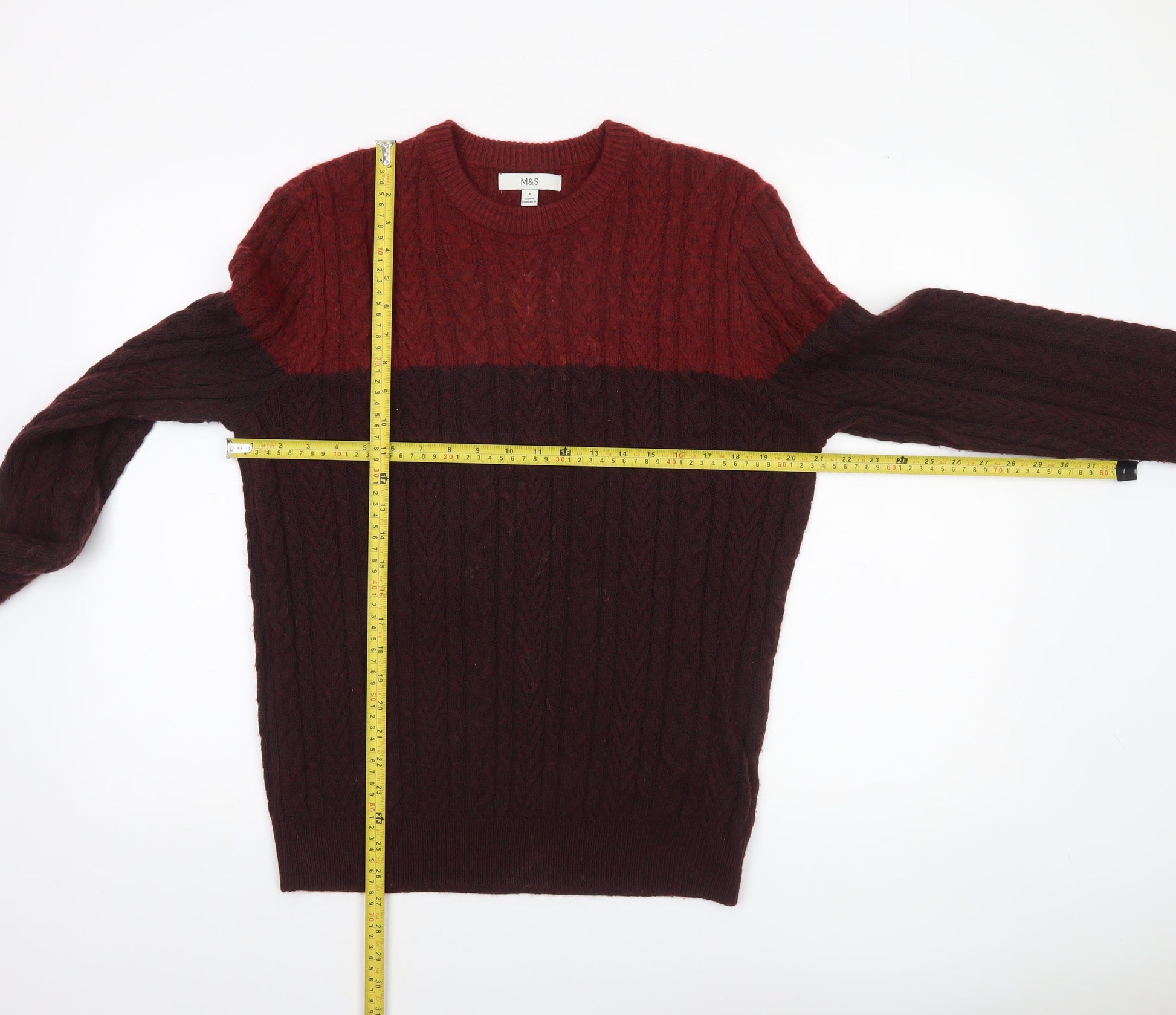 Marks and Spencer Men's Red Cable-Knit Jumper Size M Classic Fit