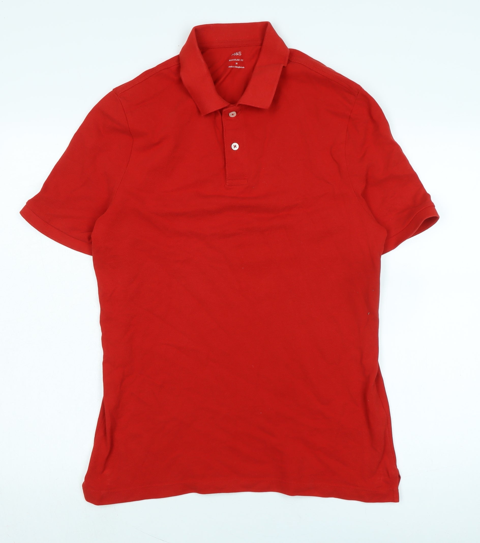 Marks and Spencer Mens Red Cotton Polo Size M Collared