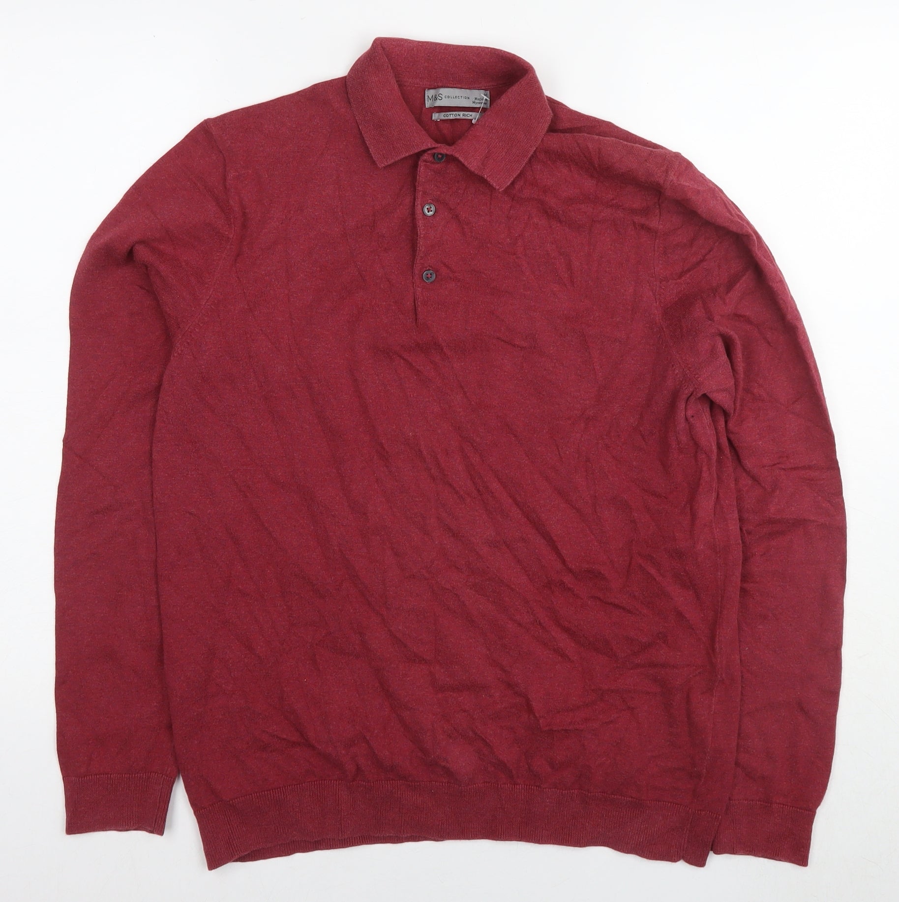 Marks and Spencer Mens Red Round Neck Cotton Pullover Jumper Size M Long Sleeve