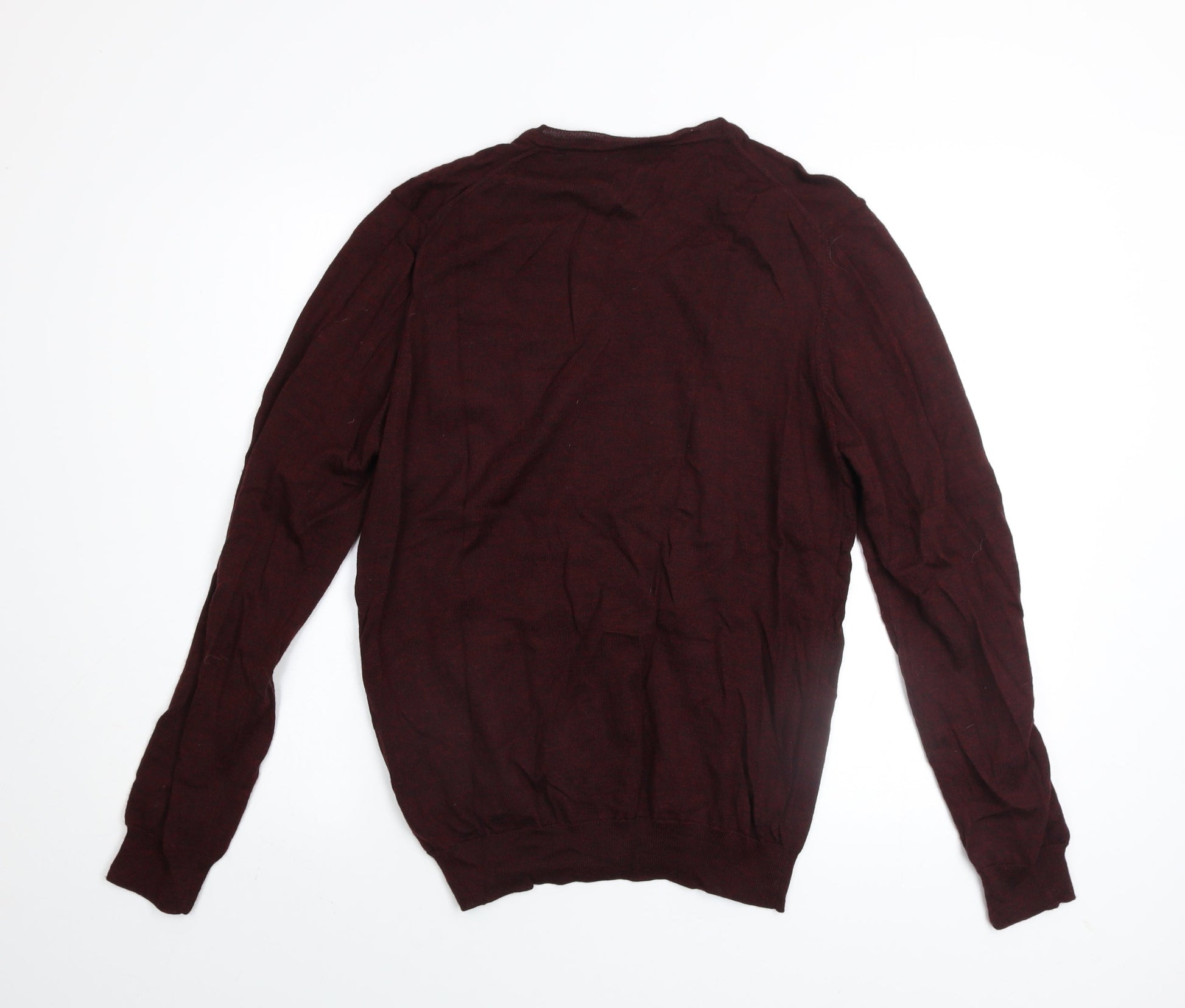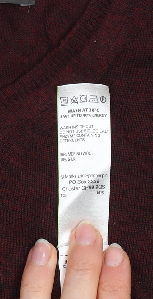 Marks and Spencer Mens Red Slim Fit V-Neck Merino Silk Jumper M