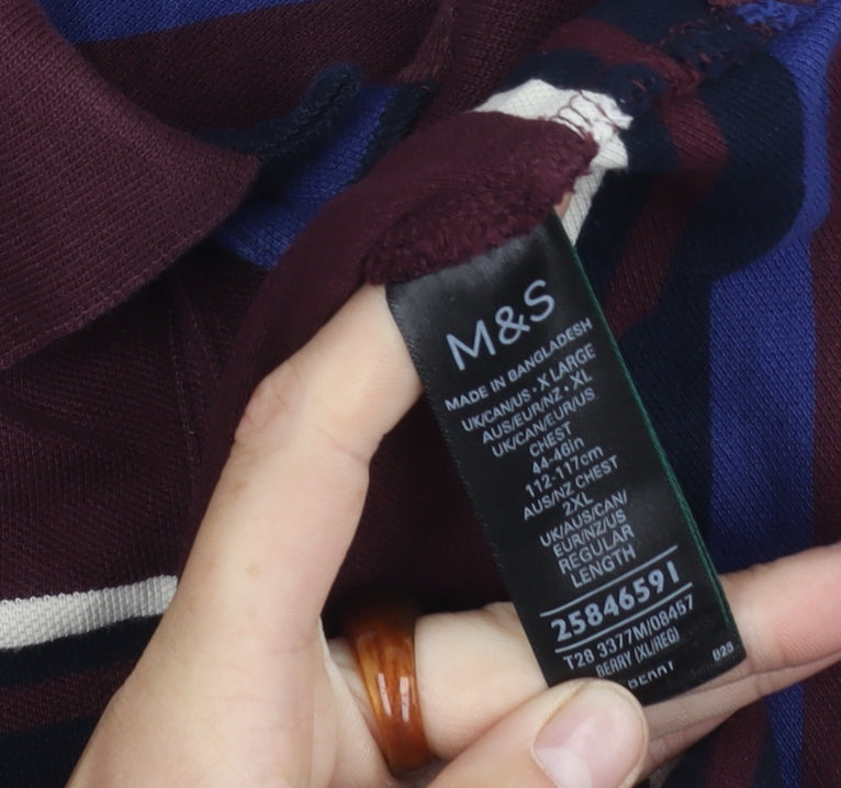 Marks and Spencer Men's XL Red Striped Polo