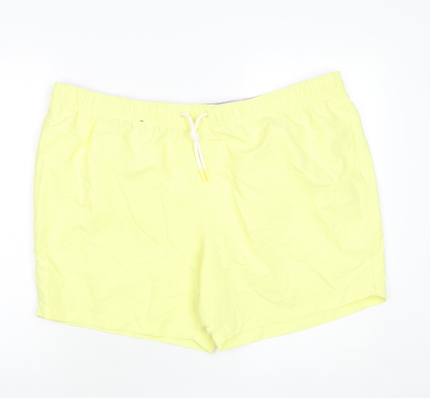Marks and Spencer Mens Yellow Polyester Bermuda Shorts Size 3XL L6 in Regular Drawstring - Swim Shorts