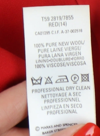 Marks and Spencer Red Wool Blazer, Women, Size 14, Long