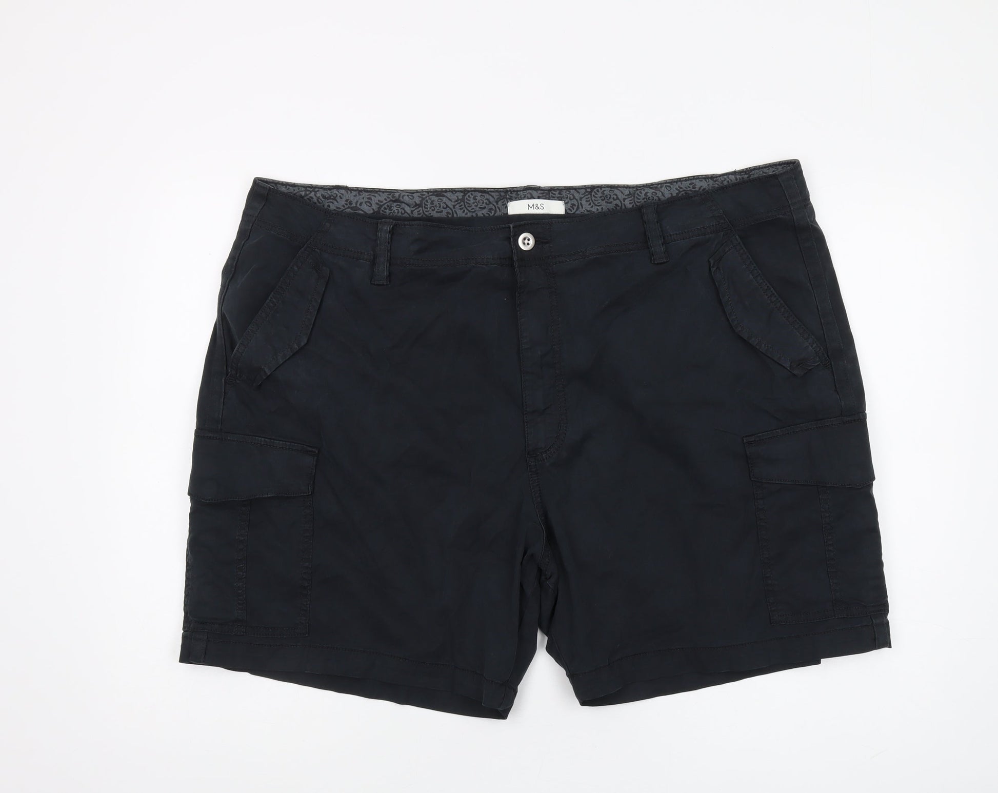 Marks and Spencer Unisex Black Cargo Shorts, Size 22