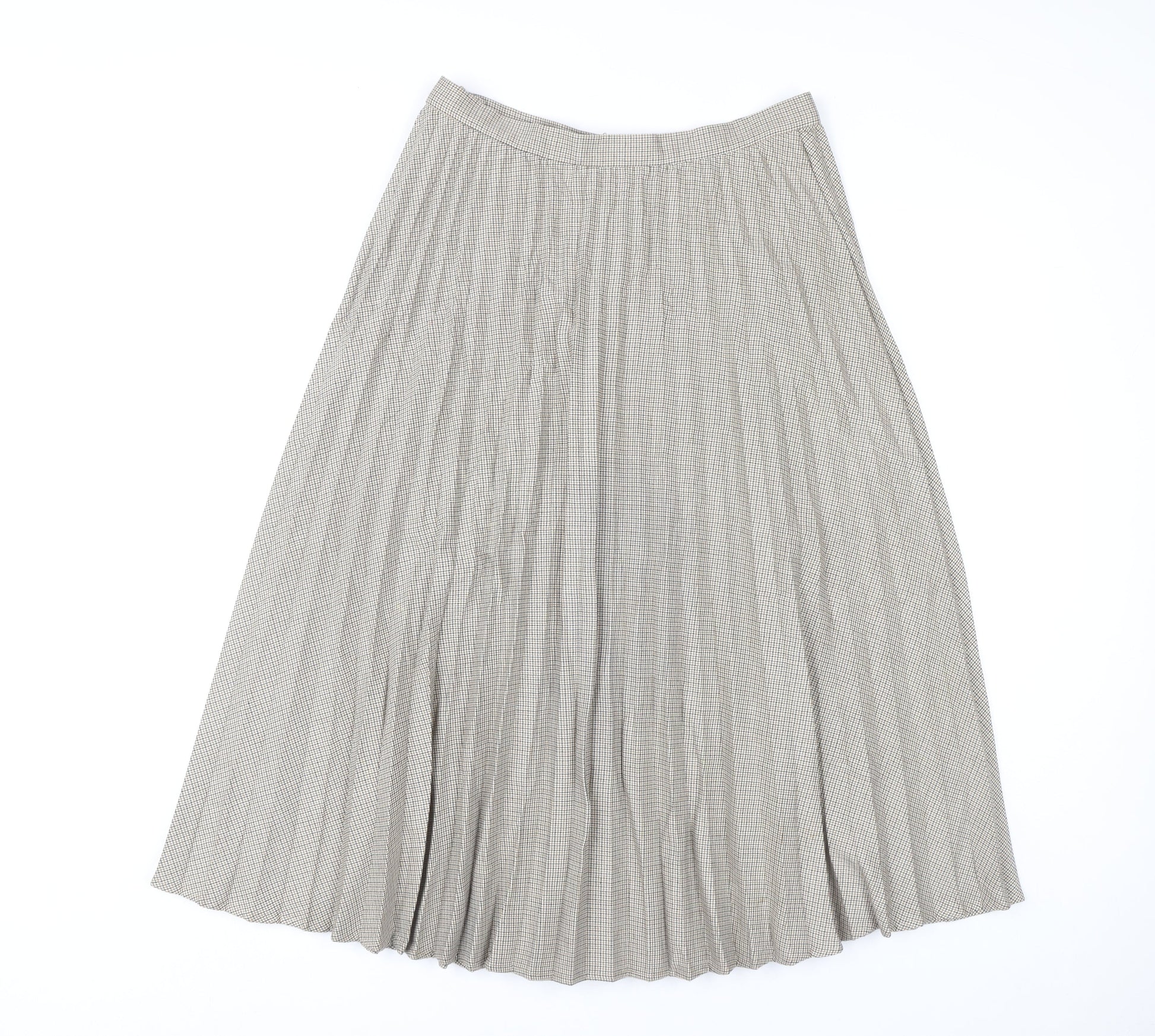 Marks and Spencer Women Beige Check Pleated Midi Skirt Size 10