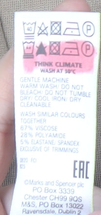 - Material Breakdown: 67% Viscose 28% Polyamide 5% Elastane