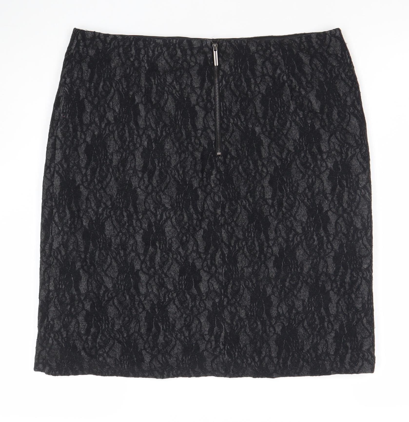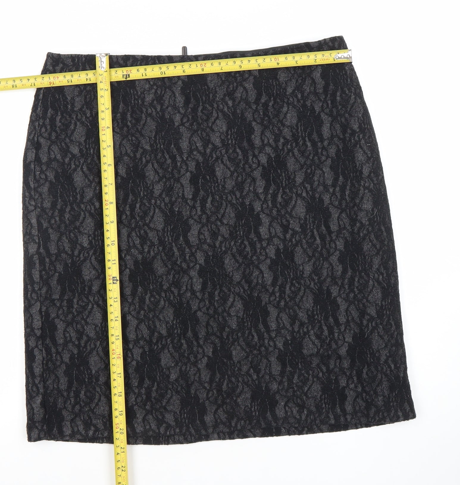 Marks and Spencer Women Black Lace Pencil Skirt Size 12 Zip Lined