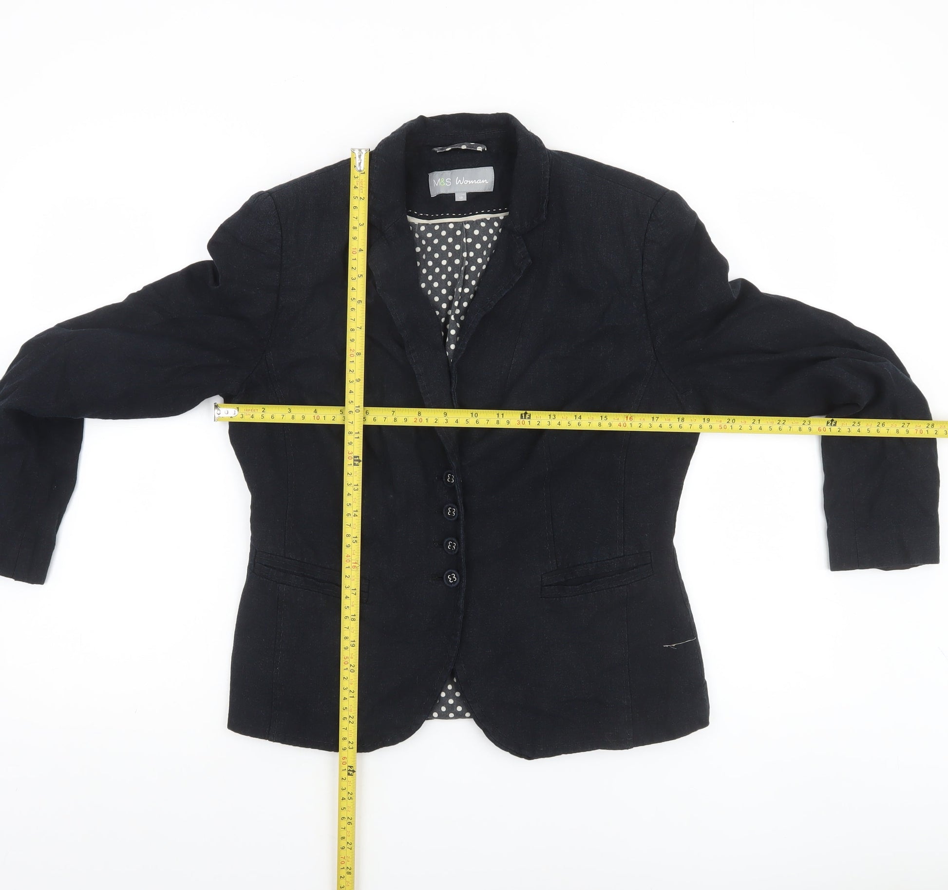 Marks and Spencer Women Black Linen Blend Blazer Size 12 Single Breasted