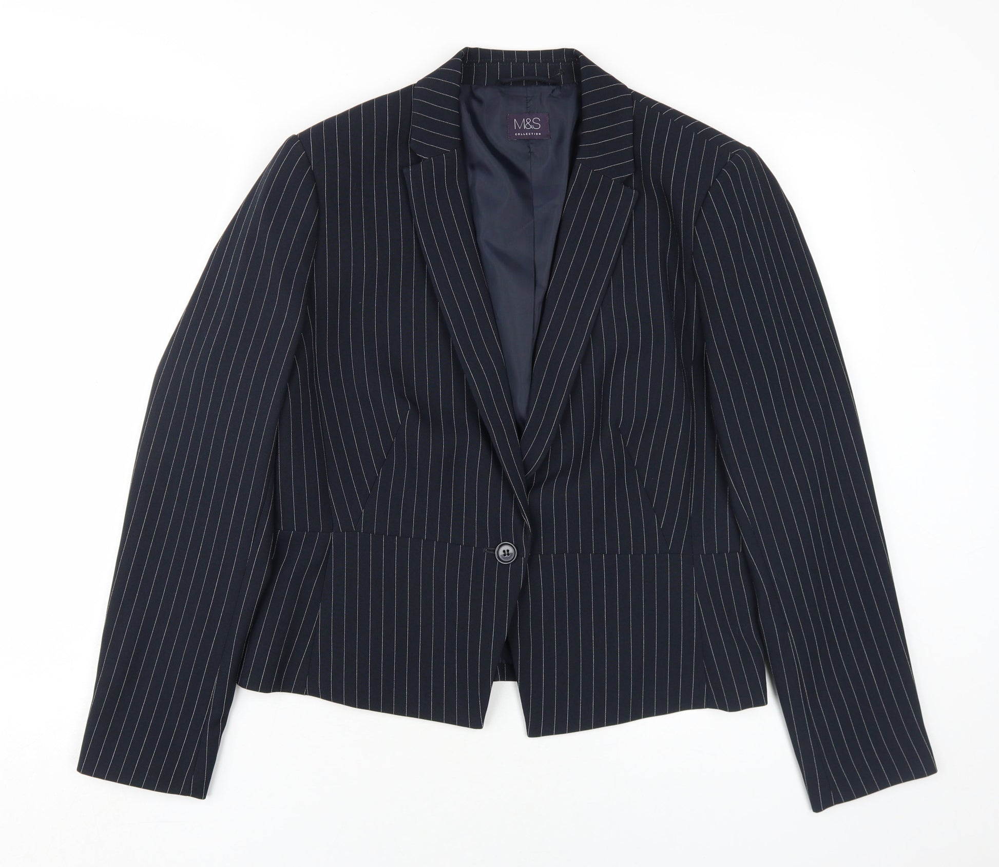 Marks and Spencer Women Black Pinstripe Blazer Size 14