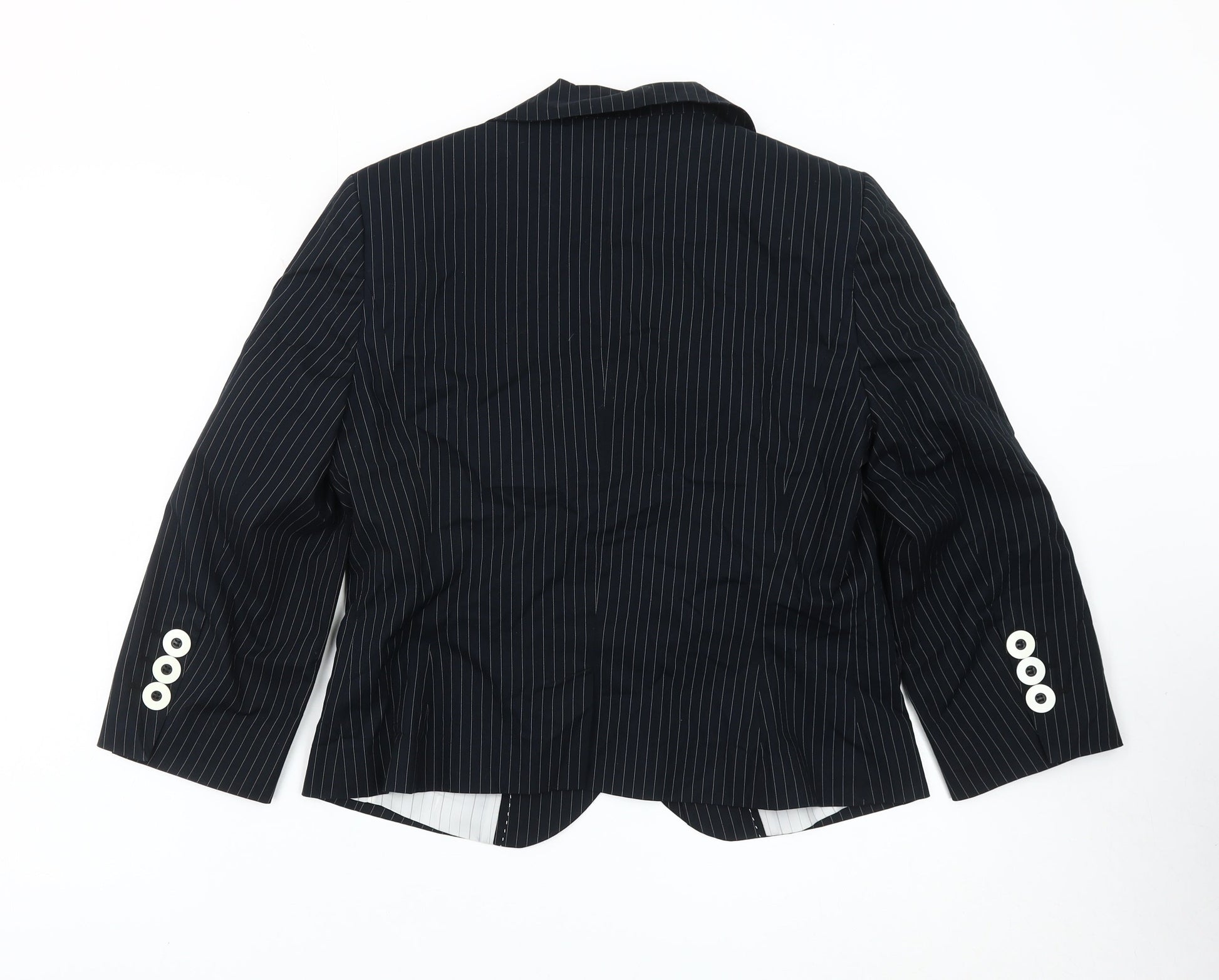 Marks and Spencer Women Black Pinstripe Blazer Size 14 Single Breasted