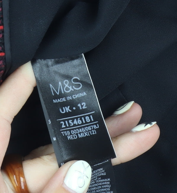 Marks and Spencer Women Black Red Bouclé Blazer Size 12