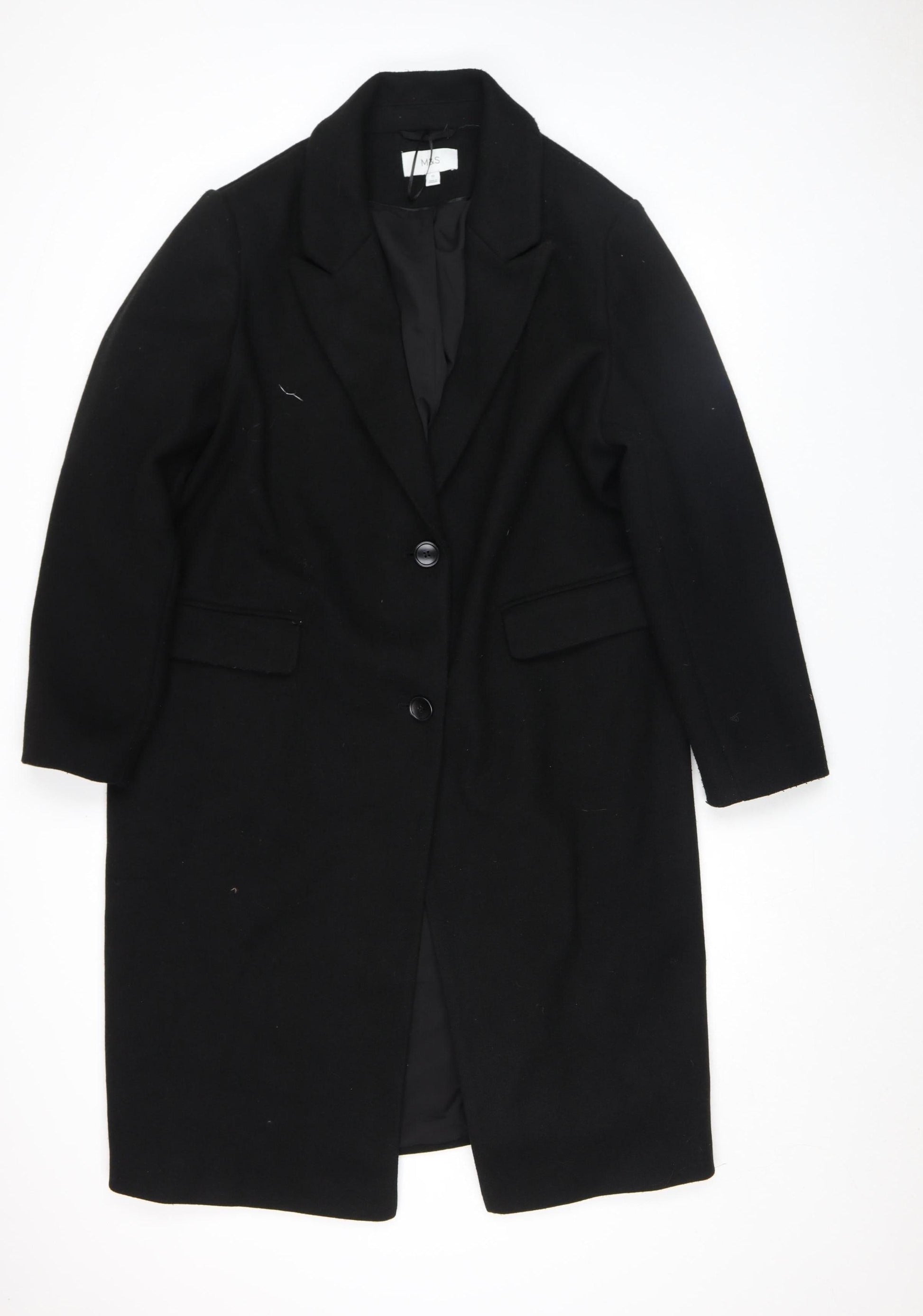 Marks and Spencer Women Black Wool Blend Long Overcoat Size 22