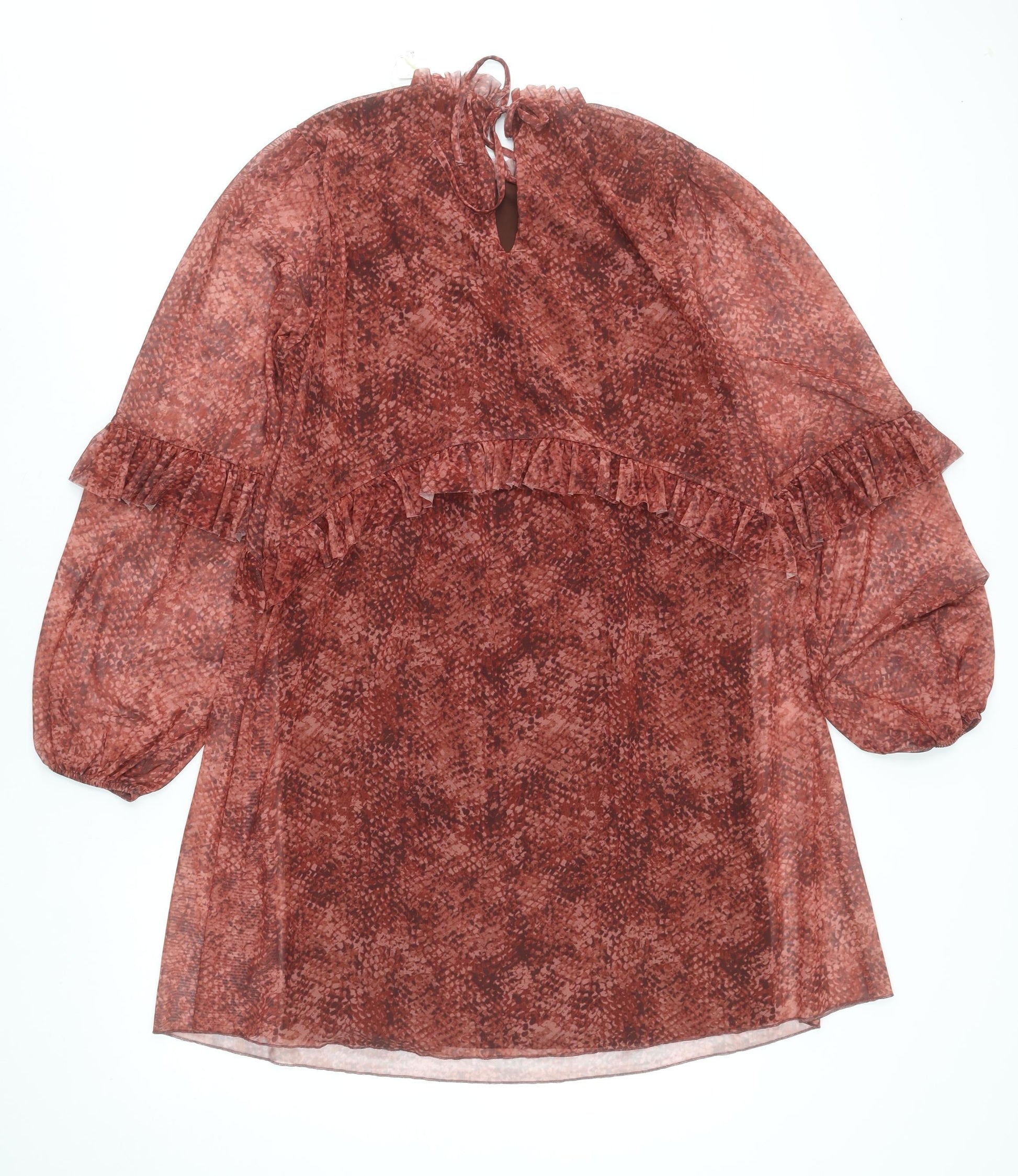 Marks and Spencer Women Brown Animal Print A-Line Dress Size 10 Tall
