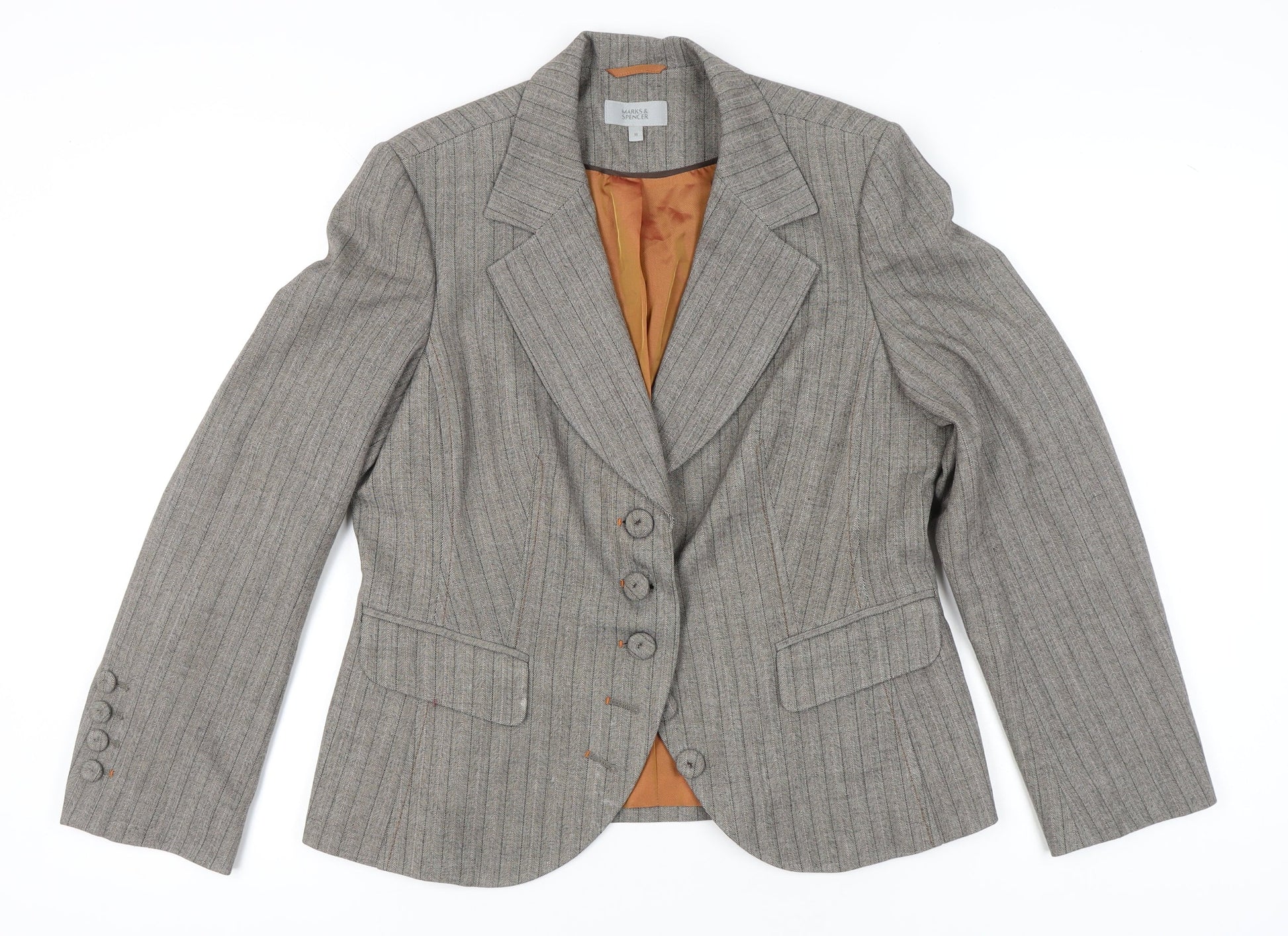 Marks and Spencer Women Brown Pinstripe Blazer Jacket Size 16