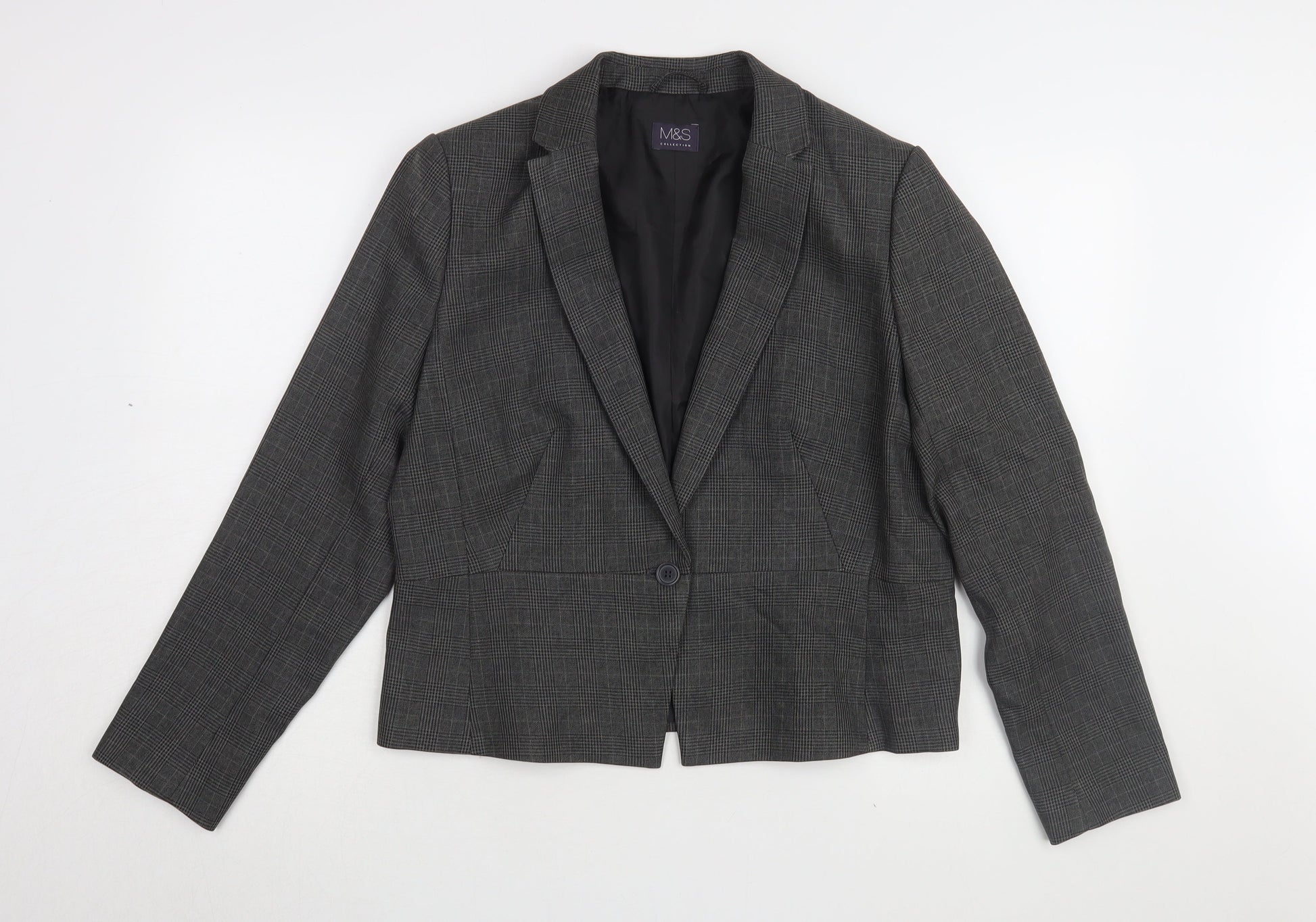 Marks and Spencer Women Grey Check Suit Jacket Size 16