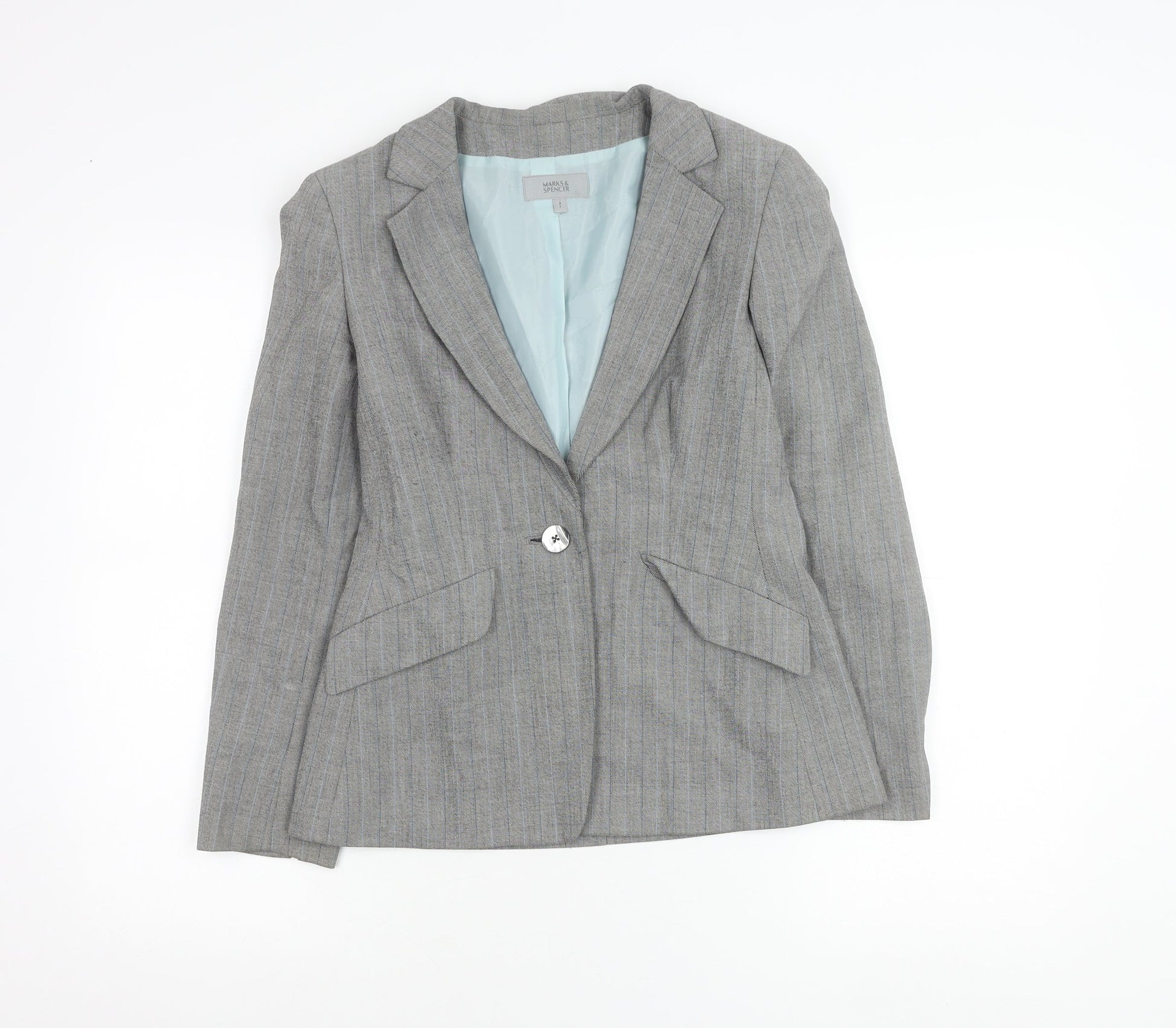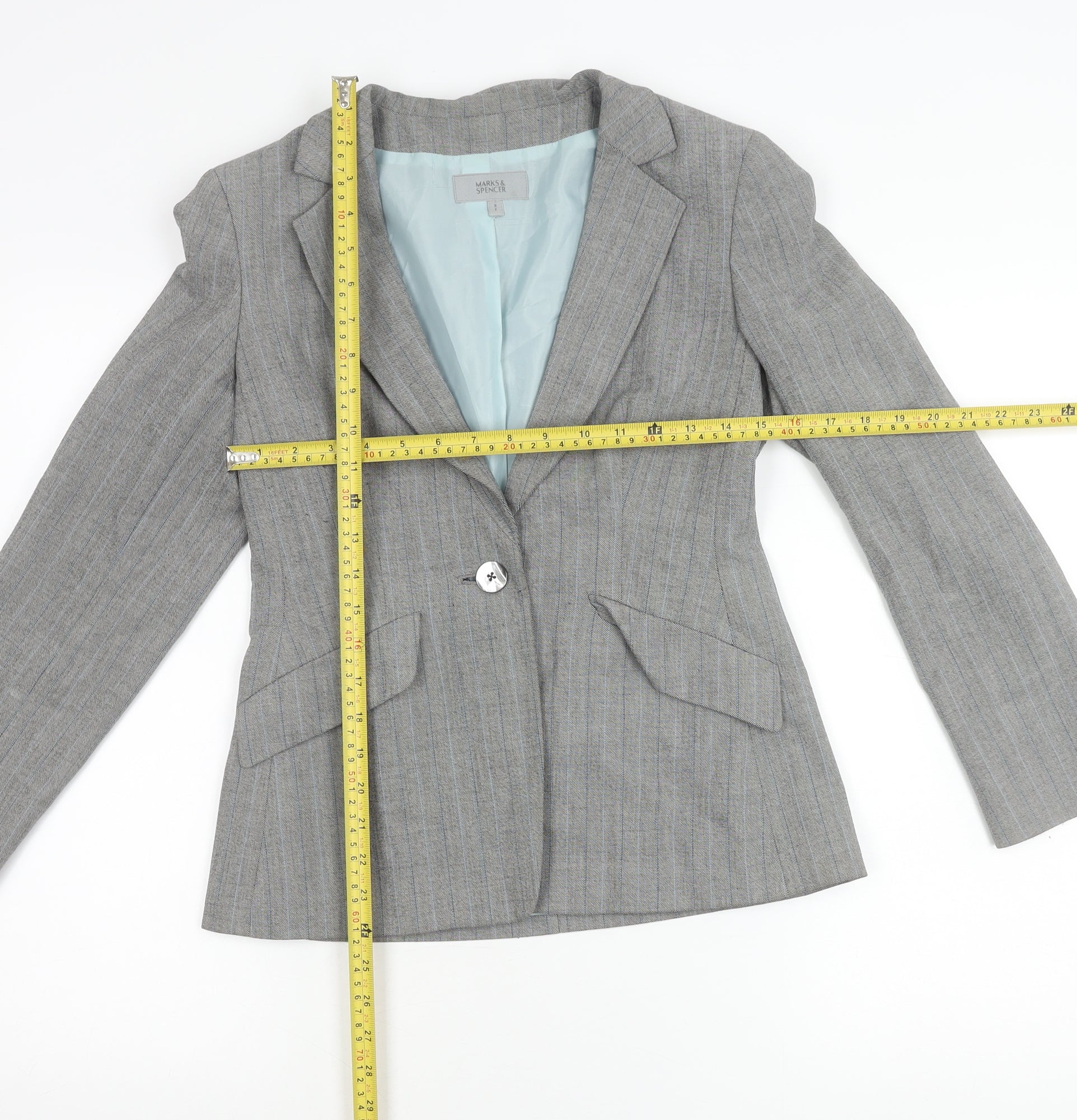 Marks and Spencer Women Grey Pinstripe Petite Suit Jacket Size 8P
