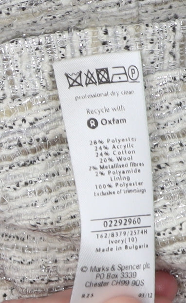 Marks and Spencer Women Ivory Bouclé Crop Blazer Size 10