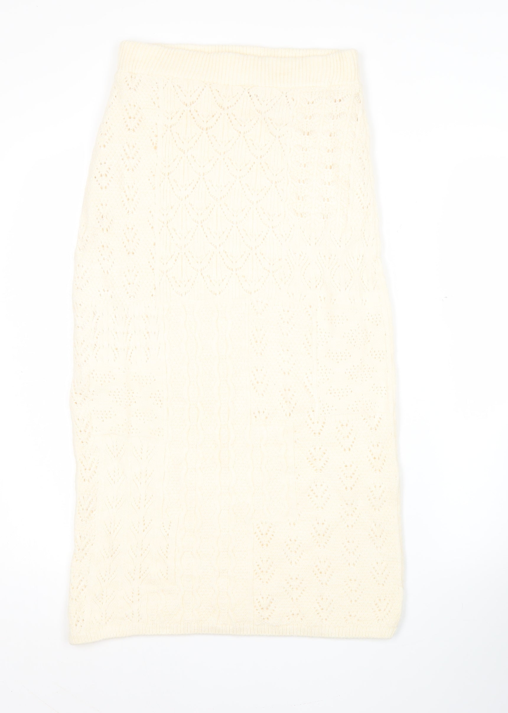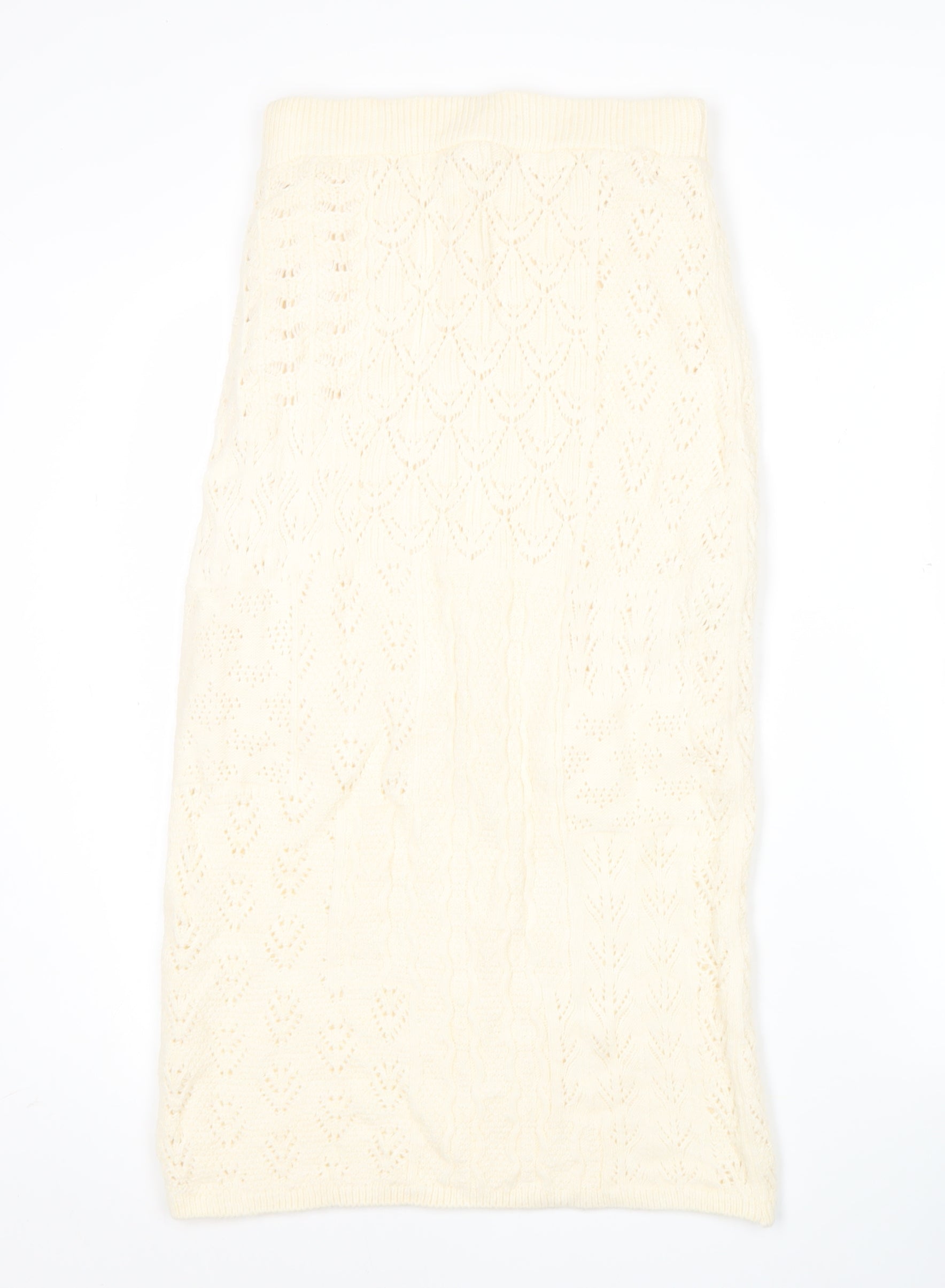 Marks and Spencer Women Ivory Knit Midi Pencil Skirt Size S