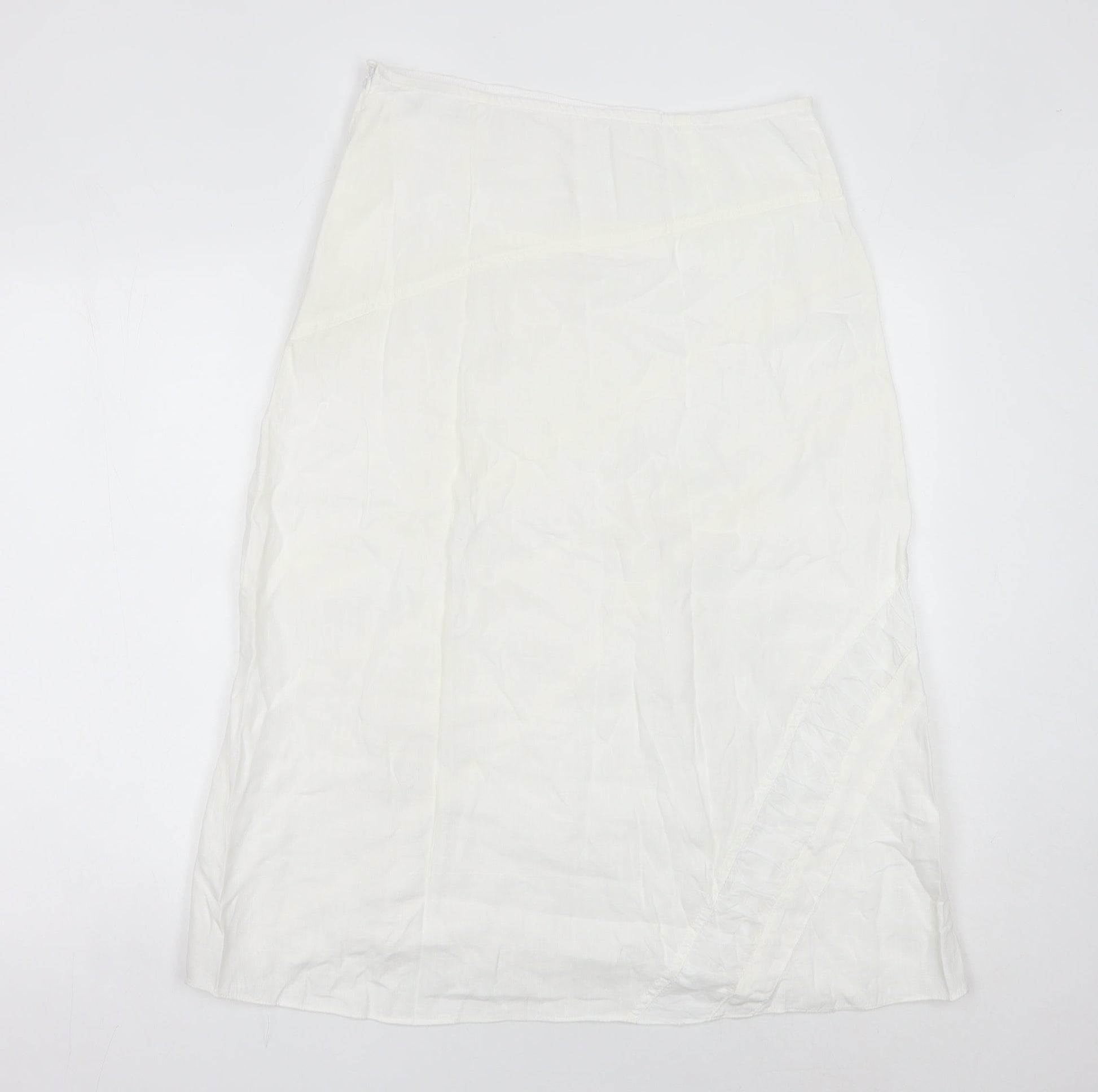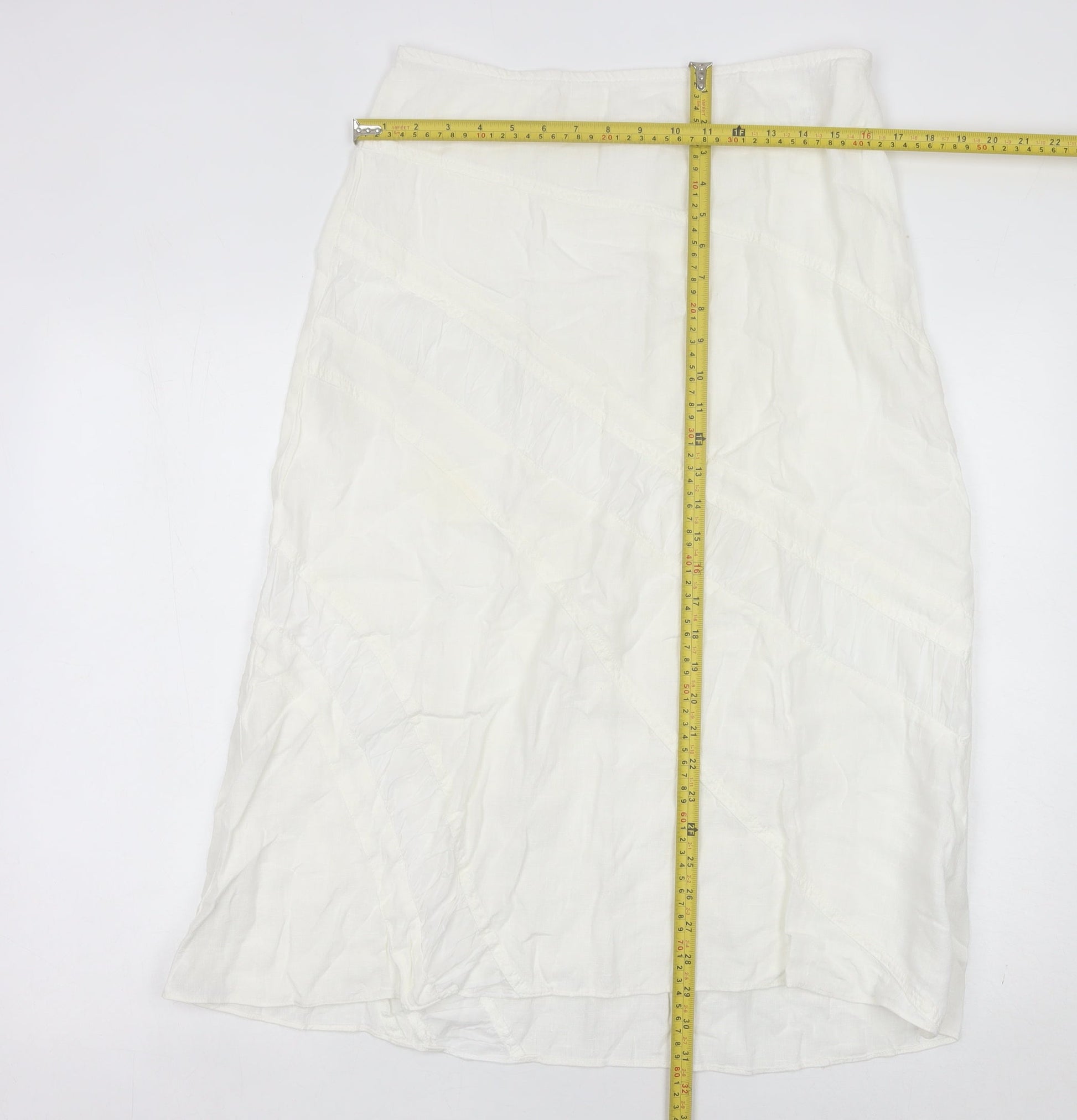 Marks and Spencer Women Ivory Linen Midi Skirt Size 12 Straight Style