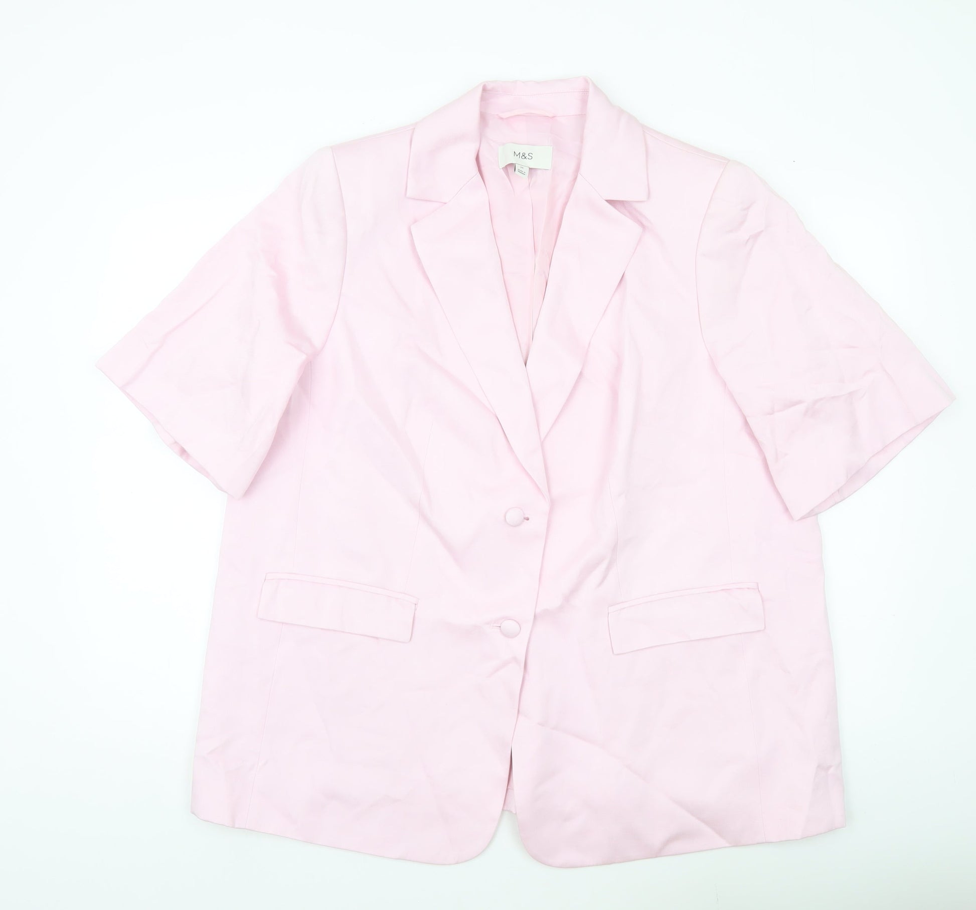 Marks and Spencer Women Pink Linen Blend Short Sleeve Blazer UK 20