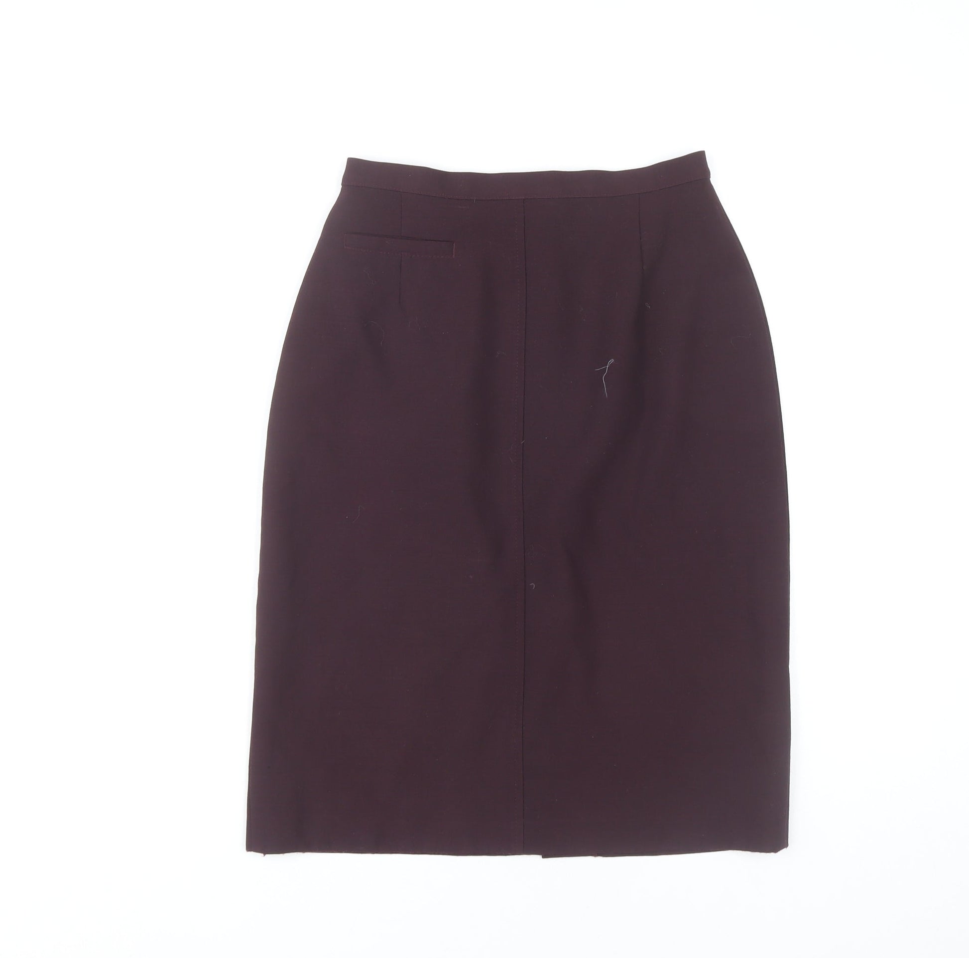 Marks and Spencer Women Purple Wool Pencil Skirt Size 8 Vintage