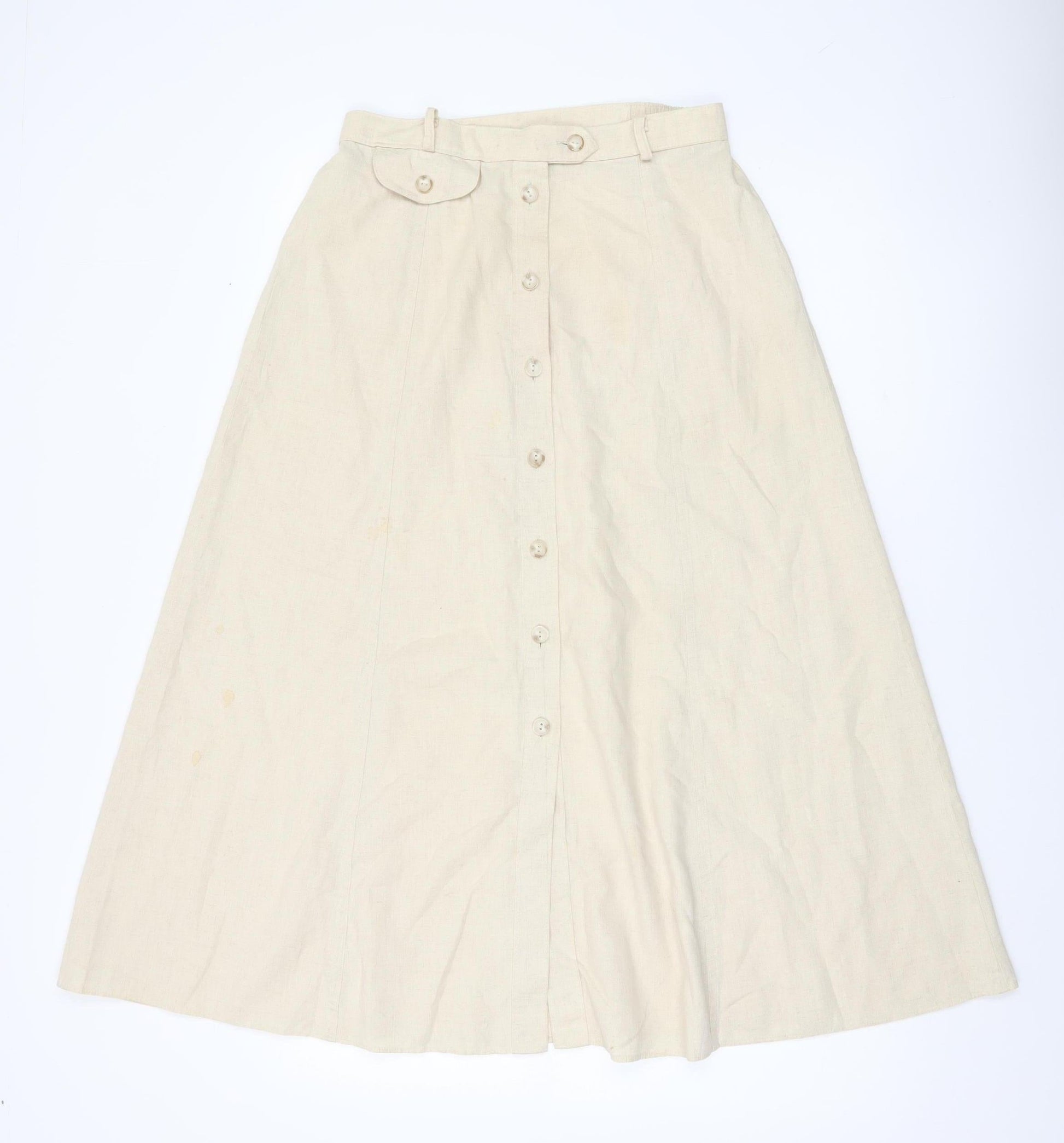 Marks and Spencer Women’s Beige Linen Blend A-Line Midi Skirt UK 12