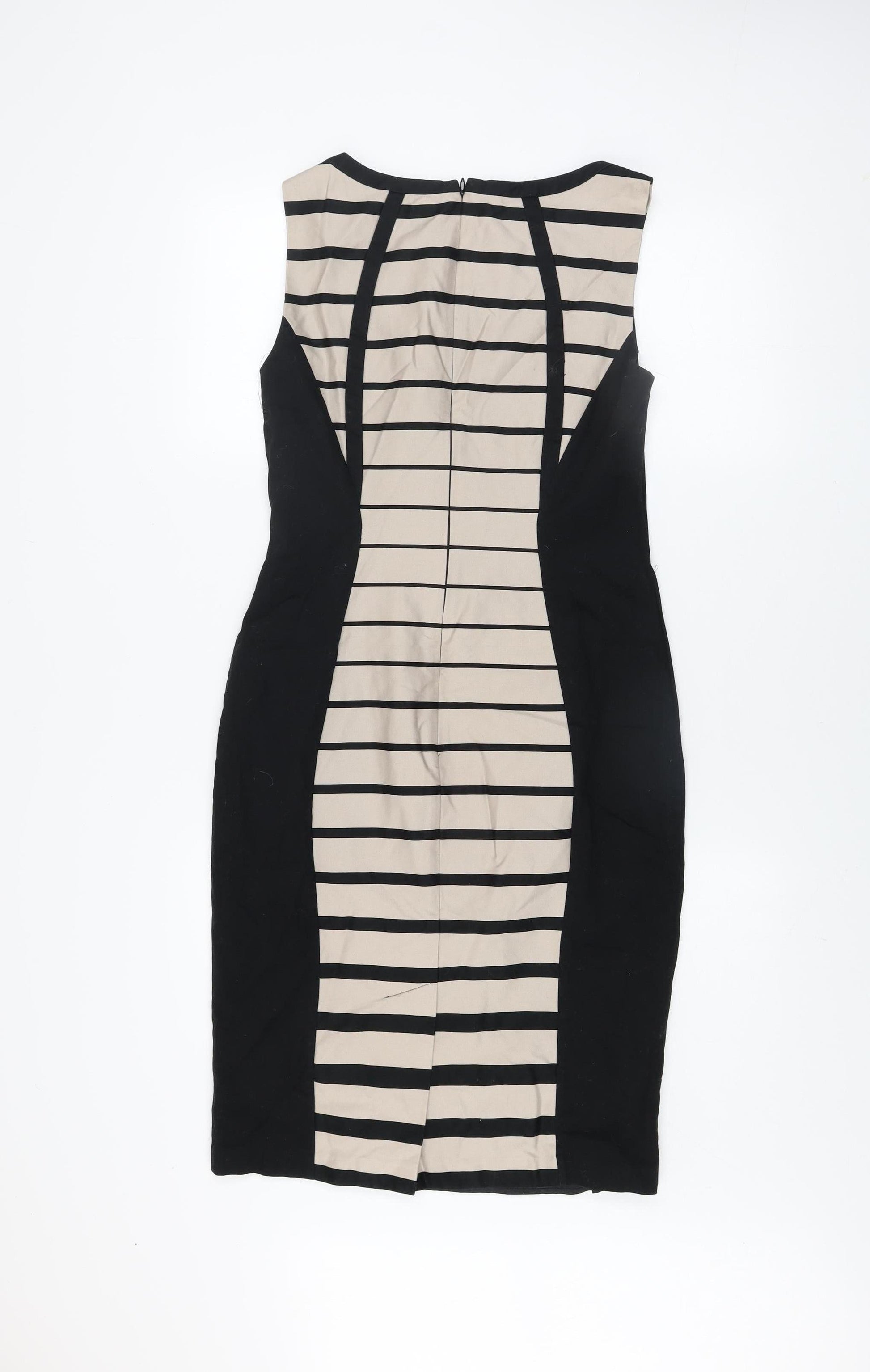 Marks and Spencer Women’s Black Beige Striped Bodycon Dress UK 10