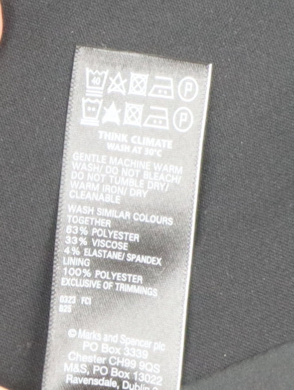 - Material Breakdown: 63% Polyester 33% Viscose 4% Elastane