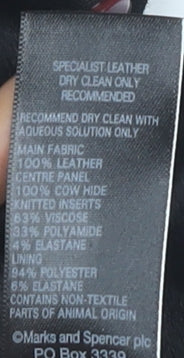 - Material Breakdown: 100% Leather 100% Cow Hide 33% Viscose 34% Polyamide 33% Elastane