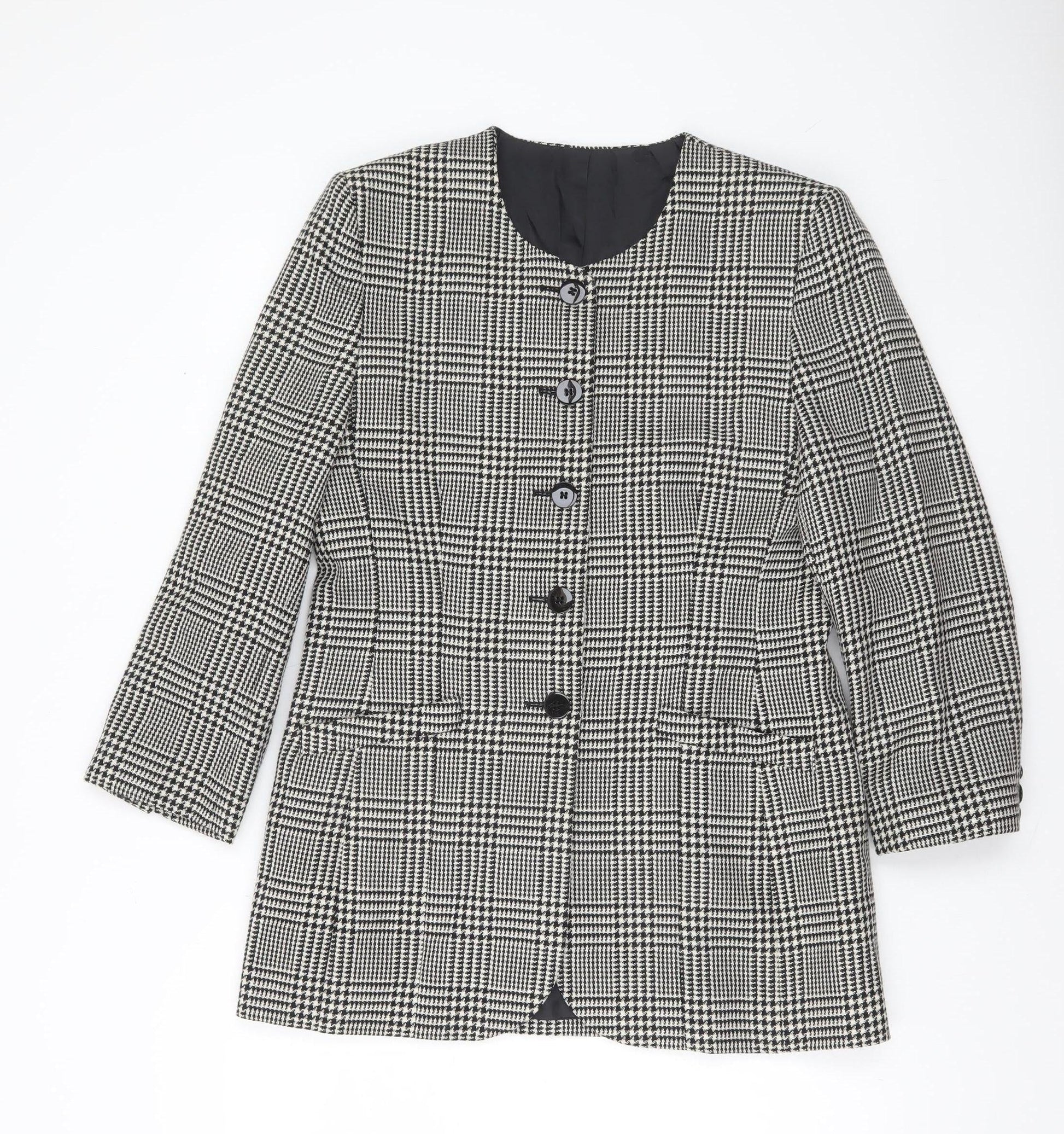 Marks and Spencer Women’s Black Mix Wool Checked Blazer UK 14