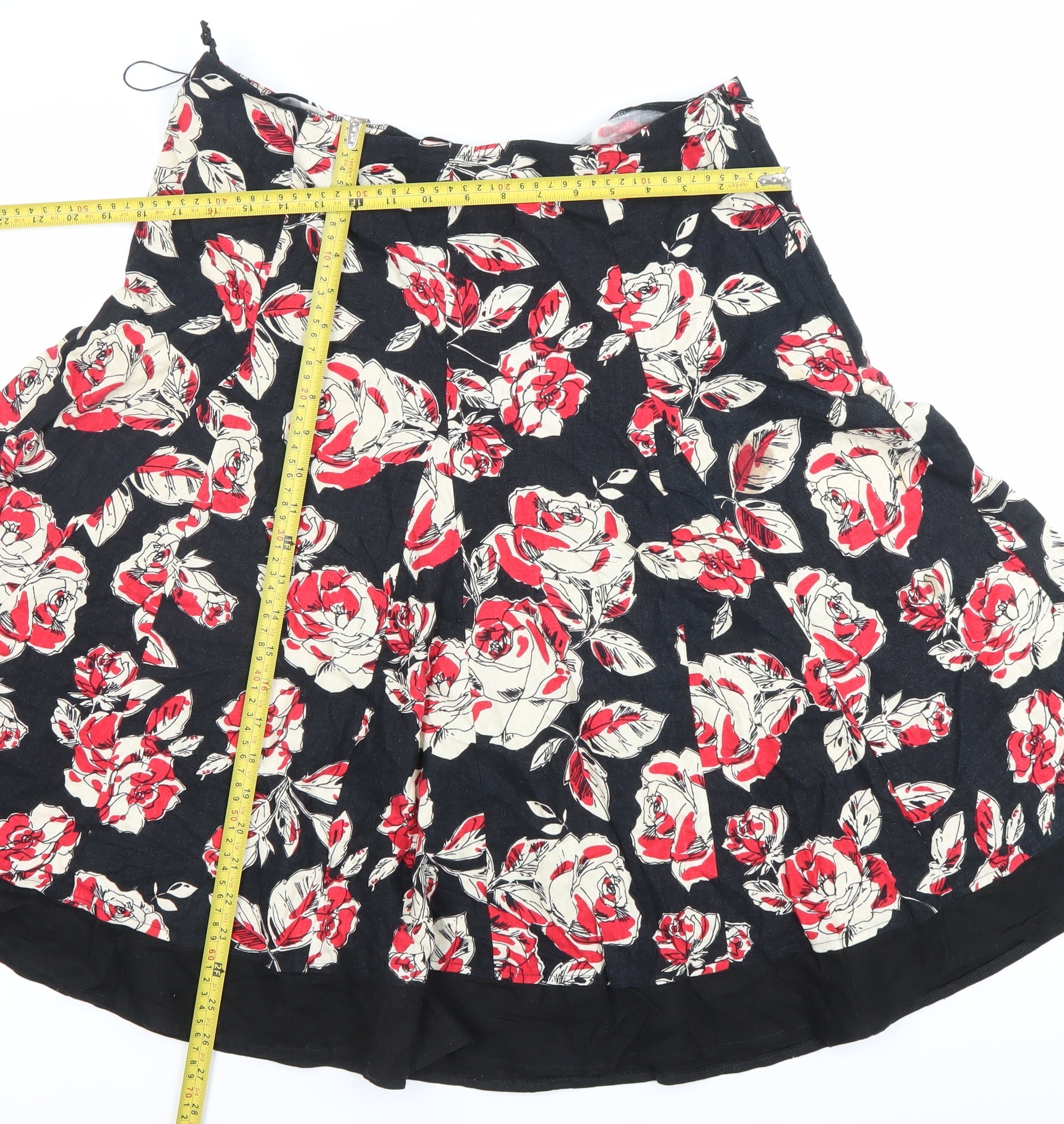 Marks and Spencer Women’s Black Red Floral A-Line Skirt UK 14