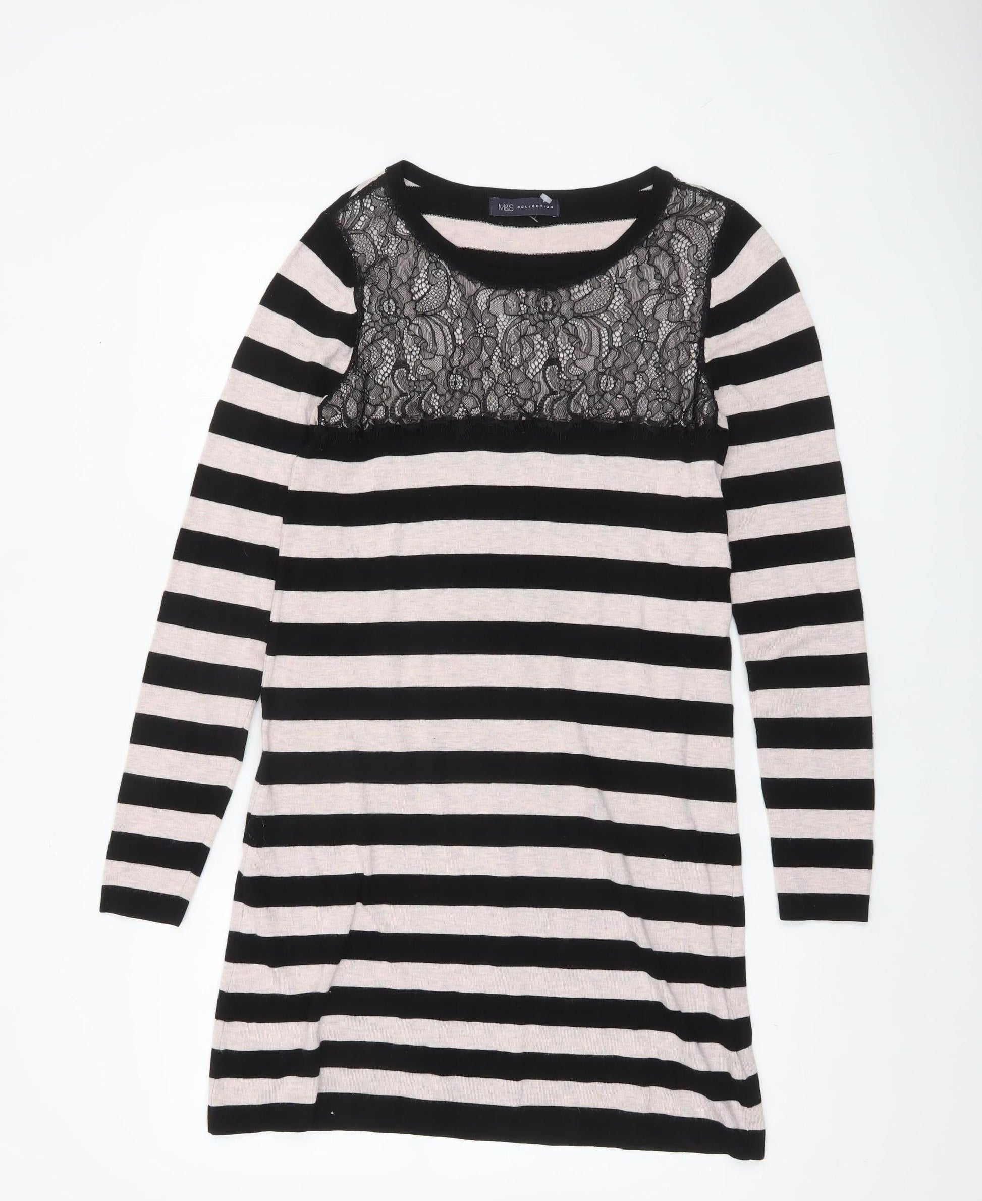 Marks and Spencer Women’s Black Striped Lace Knit Shift Dress Size 10