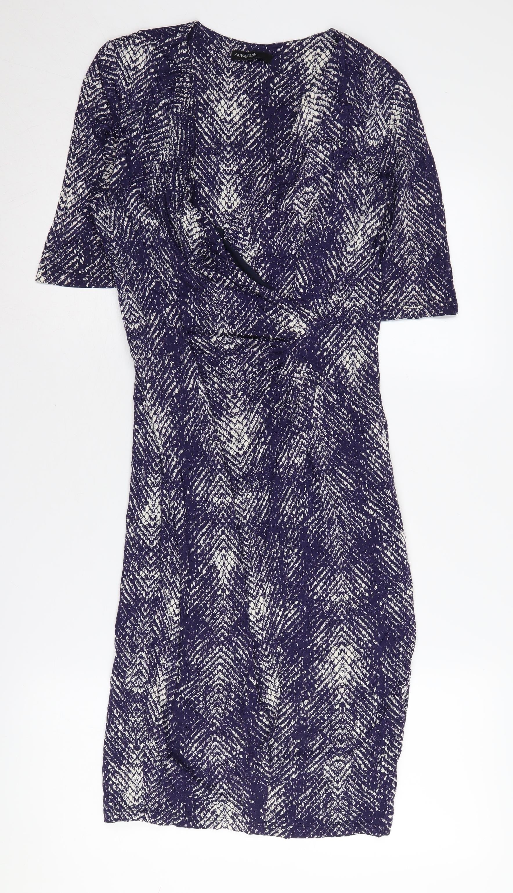 Marks and Spencer Women’s Blue Geometric V-Neck Sheath Dress