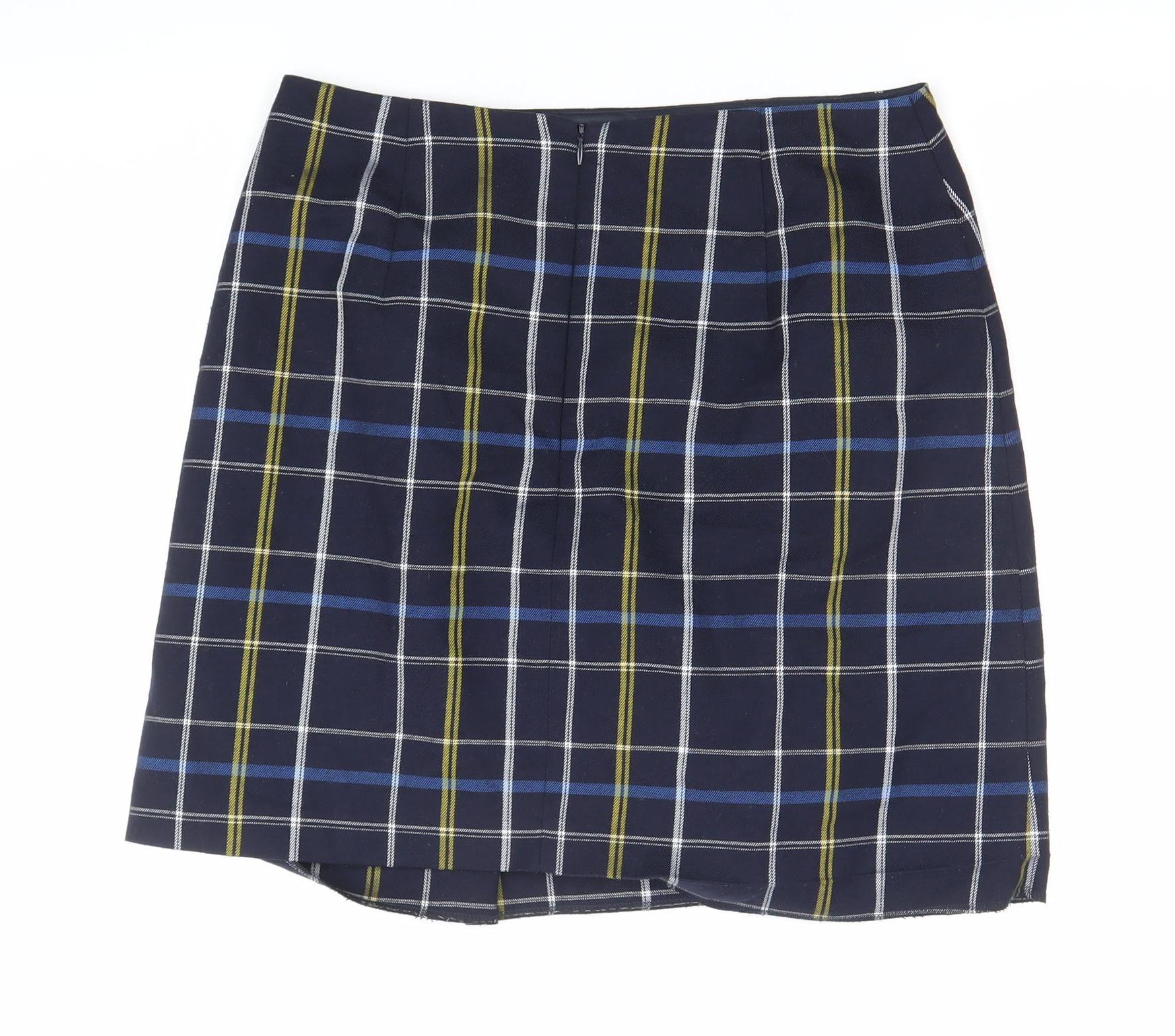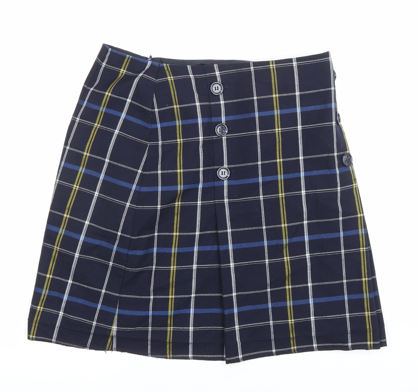 Marks and Spencer Women’s Blue Plaid Pleated Skirt UK12 Knee Length