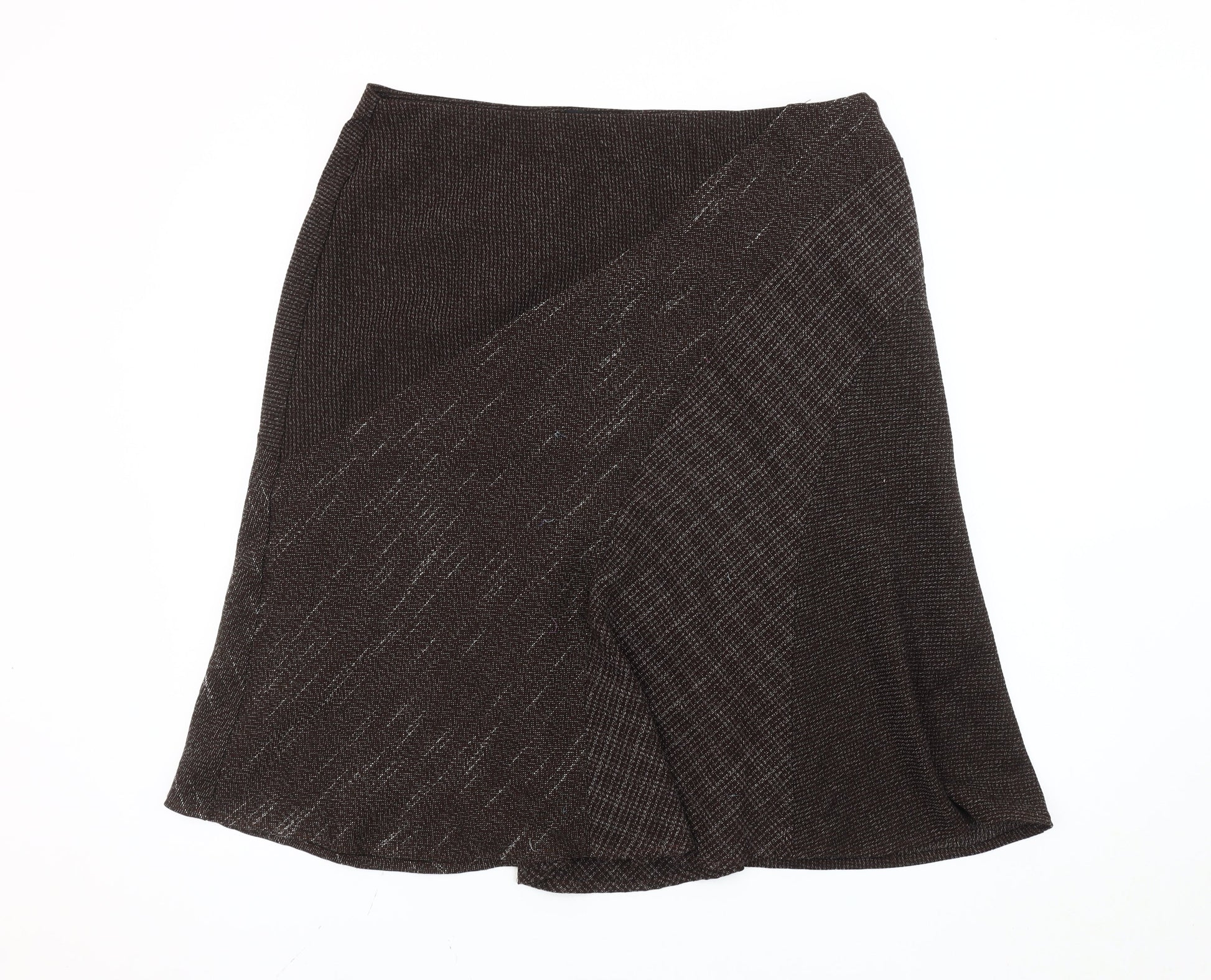 Marks and Spencer Women’s Brown Check A-Line Midi Skirt Size 16