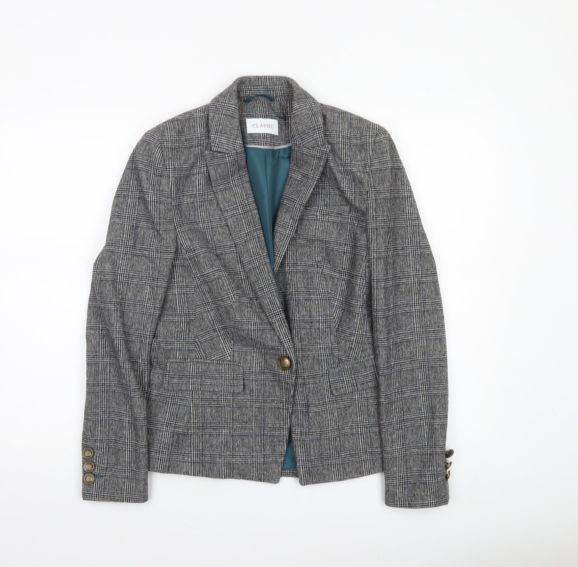 Marks and Spencer Women’s Grey Check Blazer Size 8 Classic Tailored Jacket