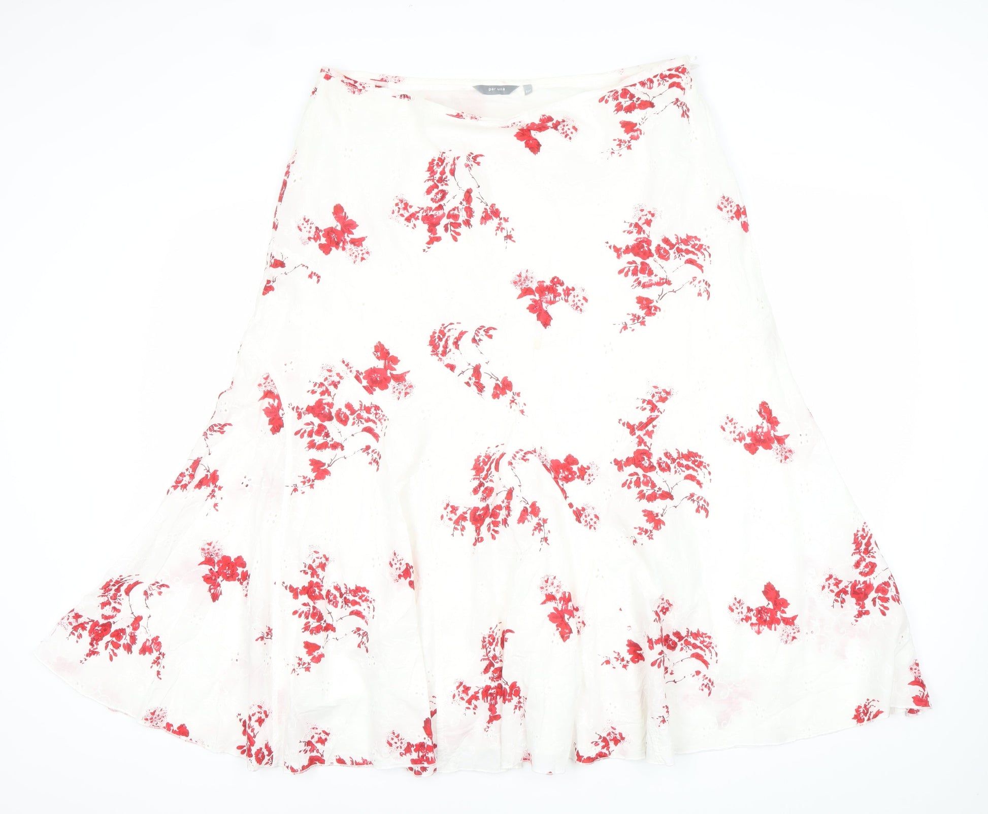 Marks and Spencer Women’s White Red Floral A-Line Midi Skirt Size 16
