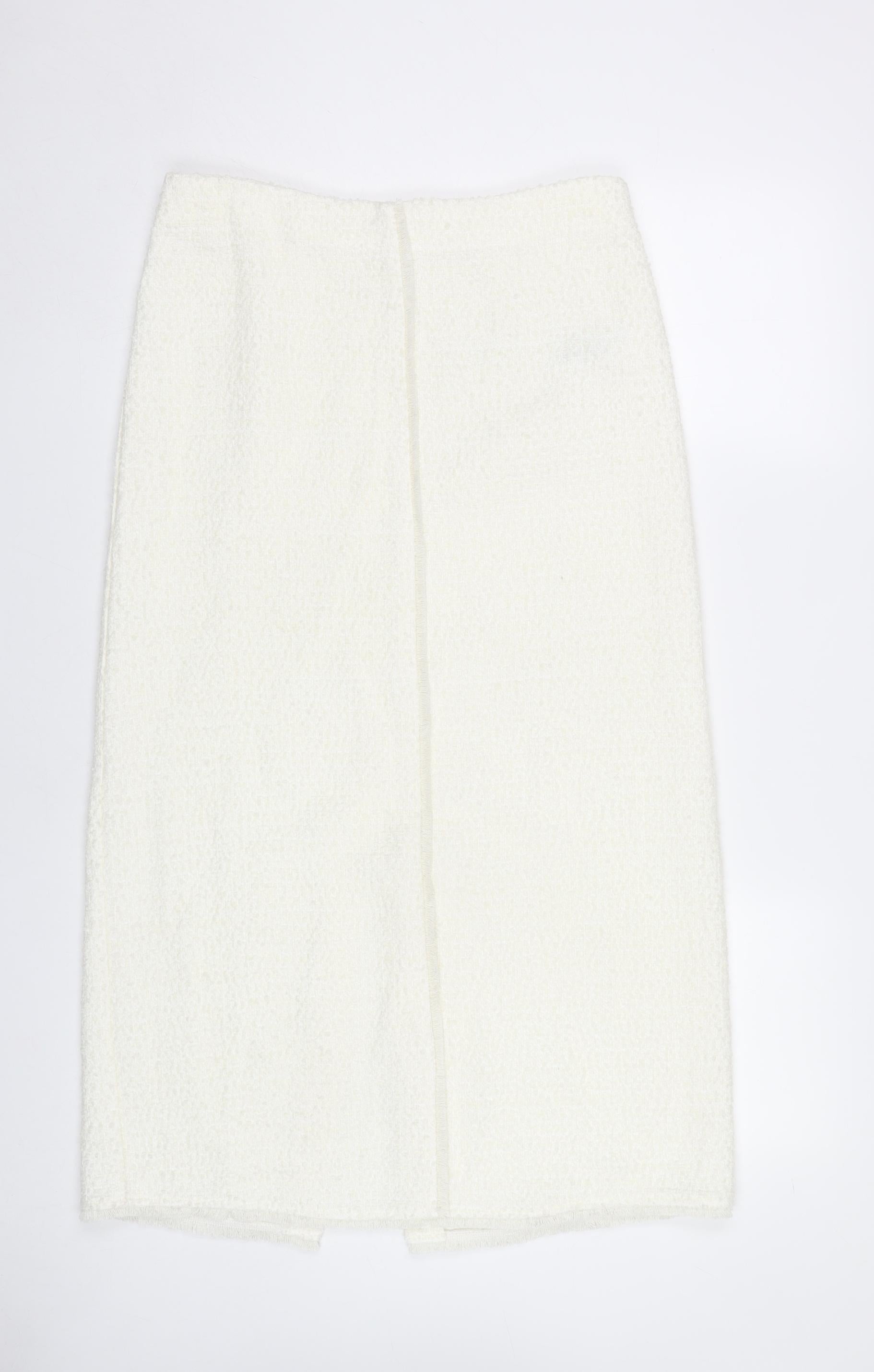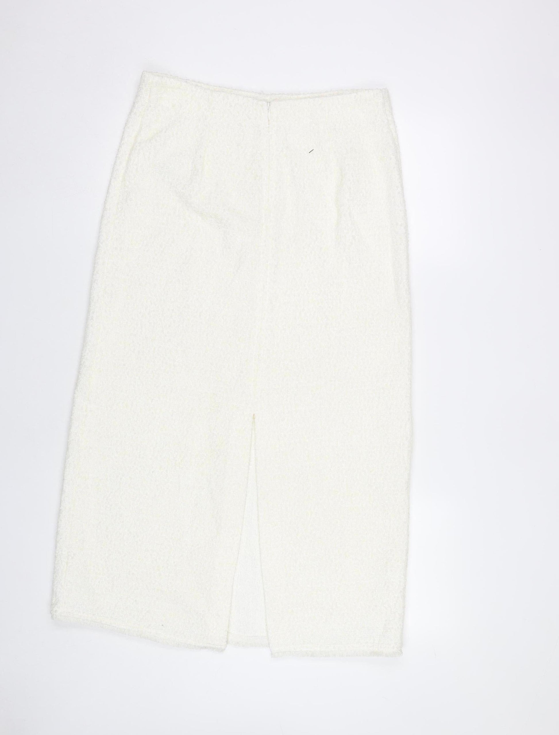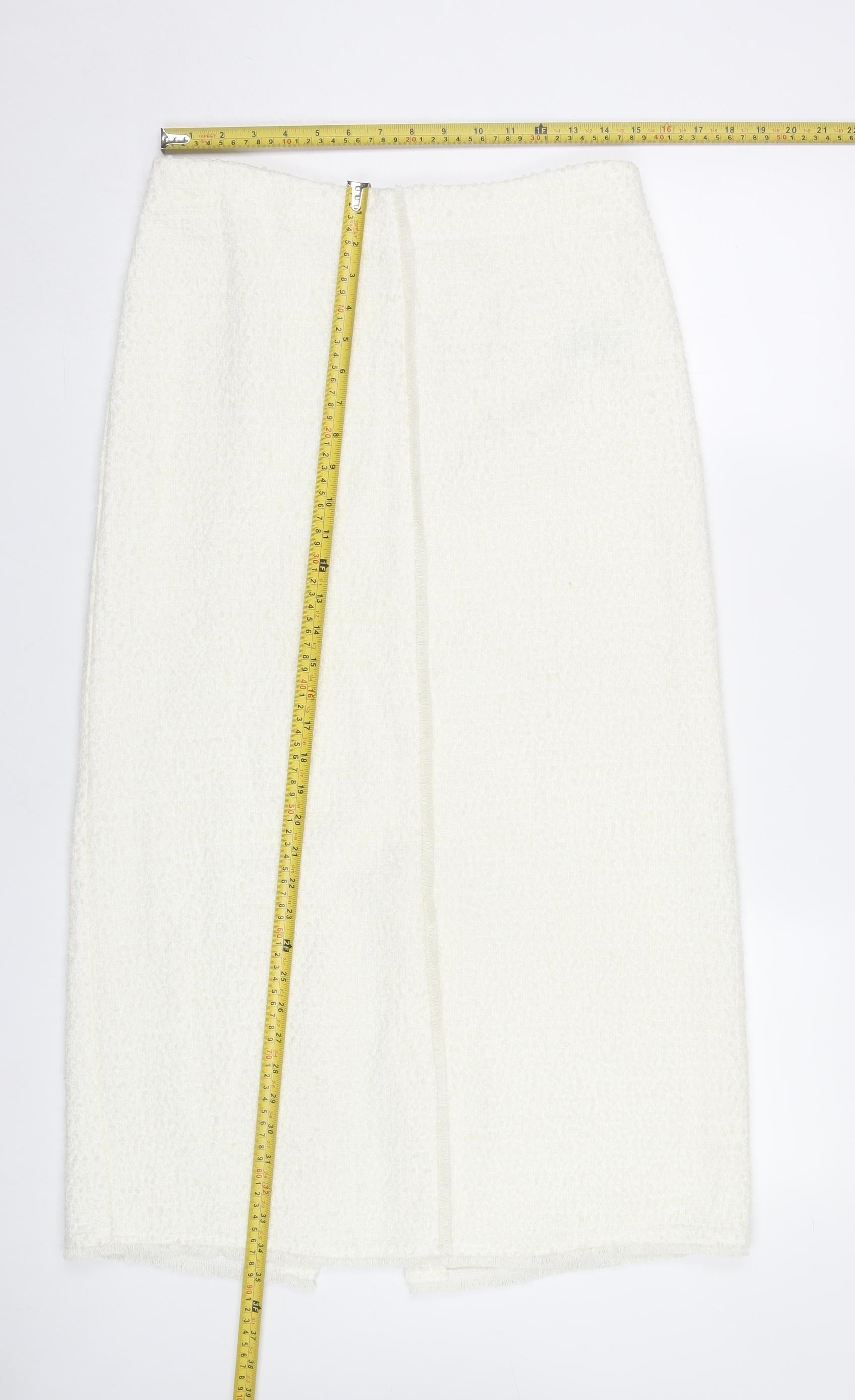 Marks and Spencer Women White Size 12 Wool Blend Midi Pencil Skirt