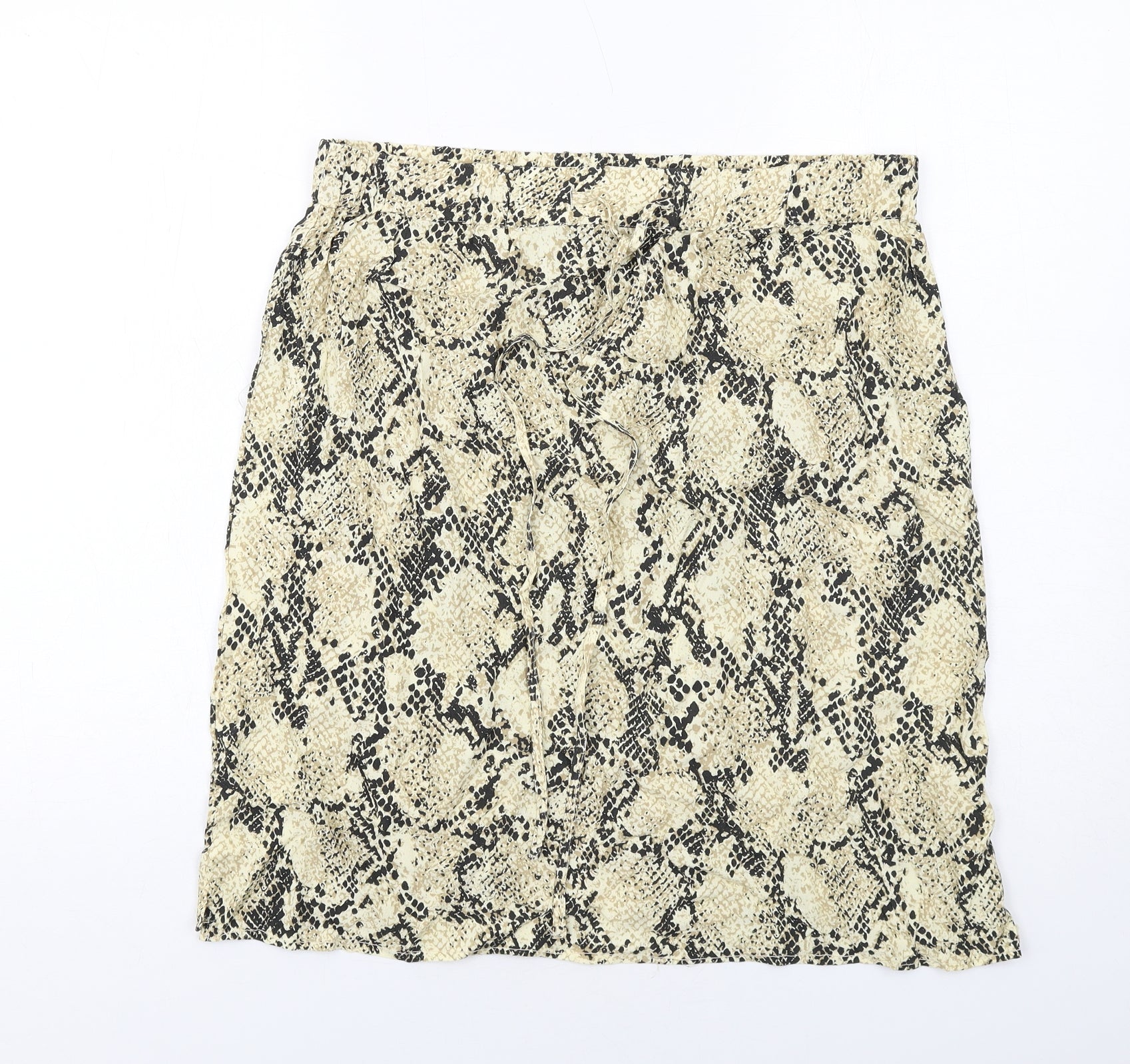 Marks and Spencer Womens Beige Animal Print Viscose A-Line Skirt Size 16 Drawstring - Snakeskin pattern