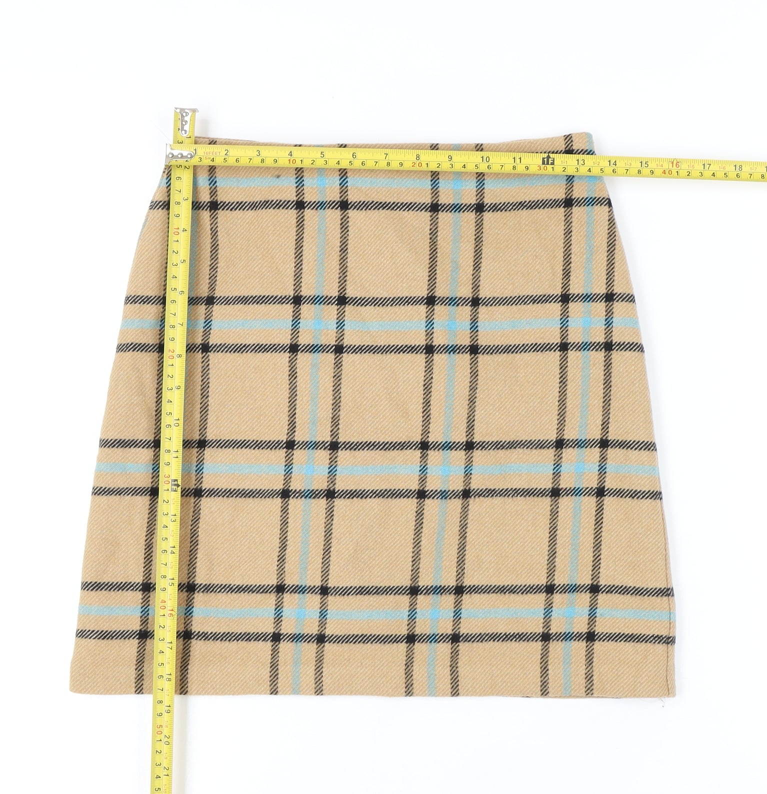 Marks and Spencer Women's Beige Check Pencil Skirt, Size 8