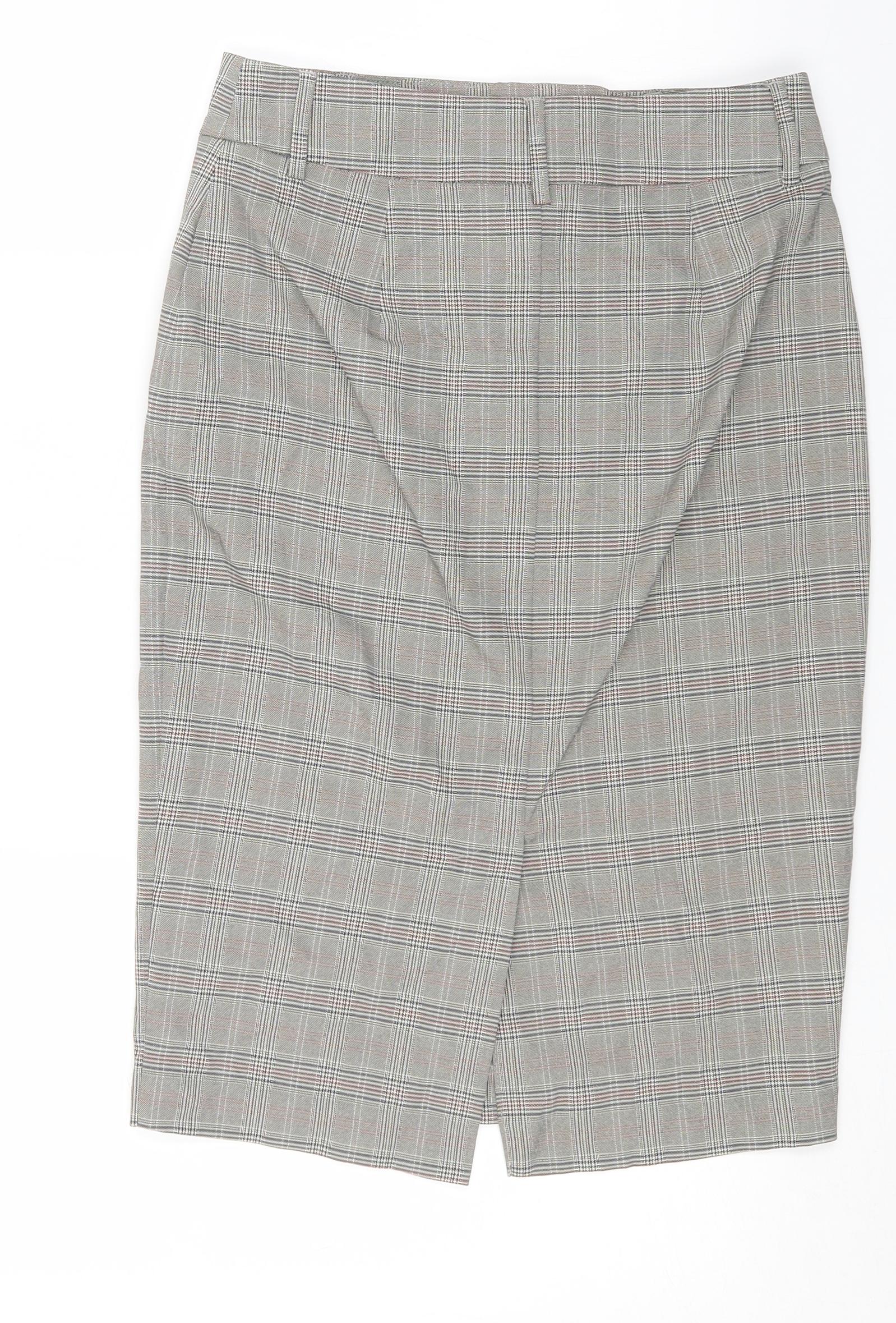 Marks and Spencer Womens Beige Check Polyester A-Line Skirt Size 6 Zip
