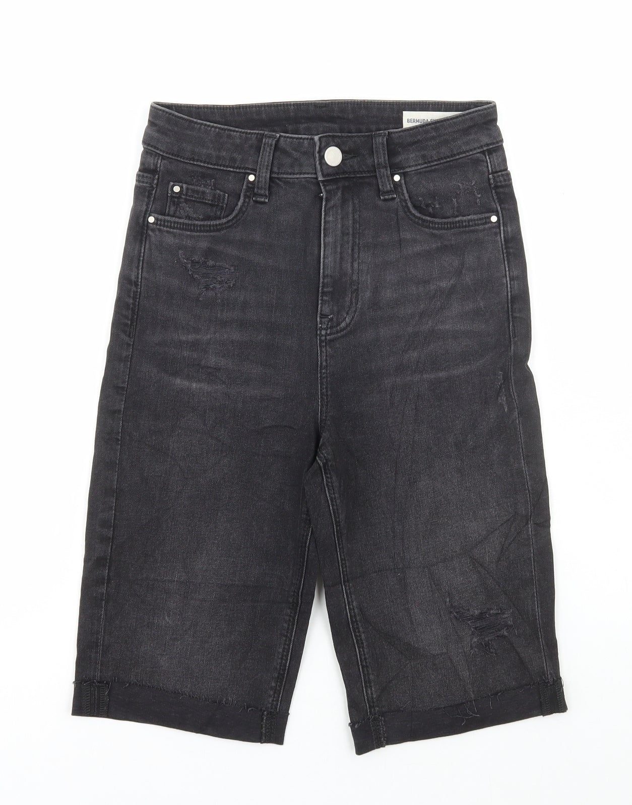 Marks and Spencer Womens Beige Cotton Bermuda Shorts Size 6 L11.5 in Regular Button - Distressed Denim