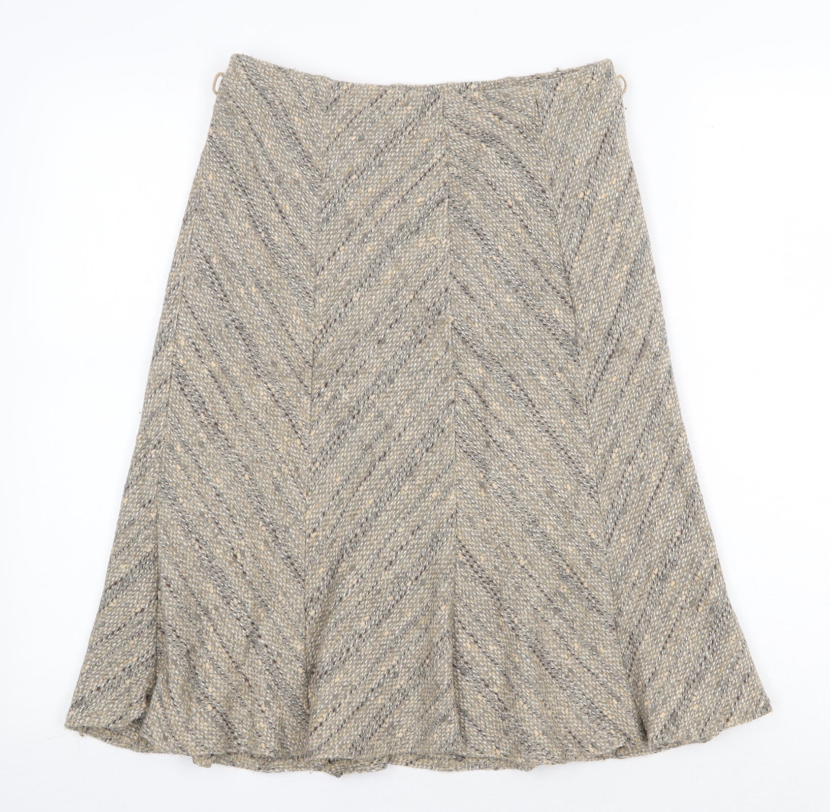 Marks and Spencer Womens Beige Geometric Polyester Swing Skirt Size 12 Zip
