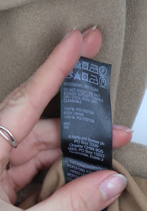 Marks and Spencer Women's Beige Long Overcoat Size 16 Classic Polyester Lined