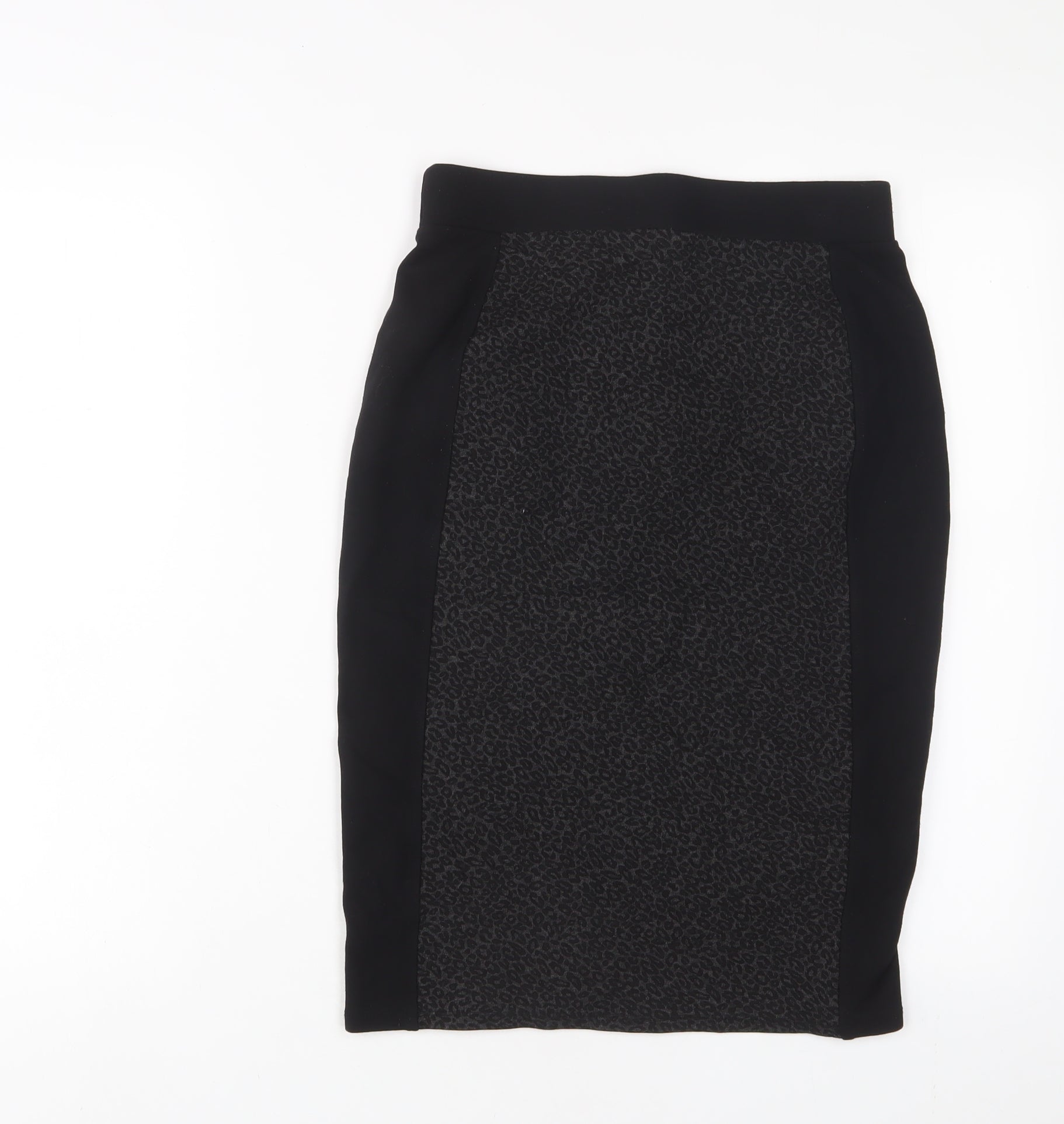 Marks and Spencer Womens Black Animal Print Viscose A-Line Skirt Size 8