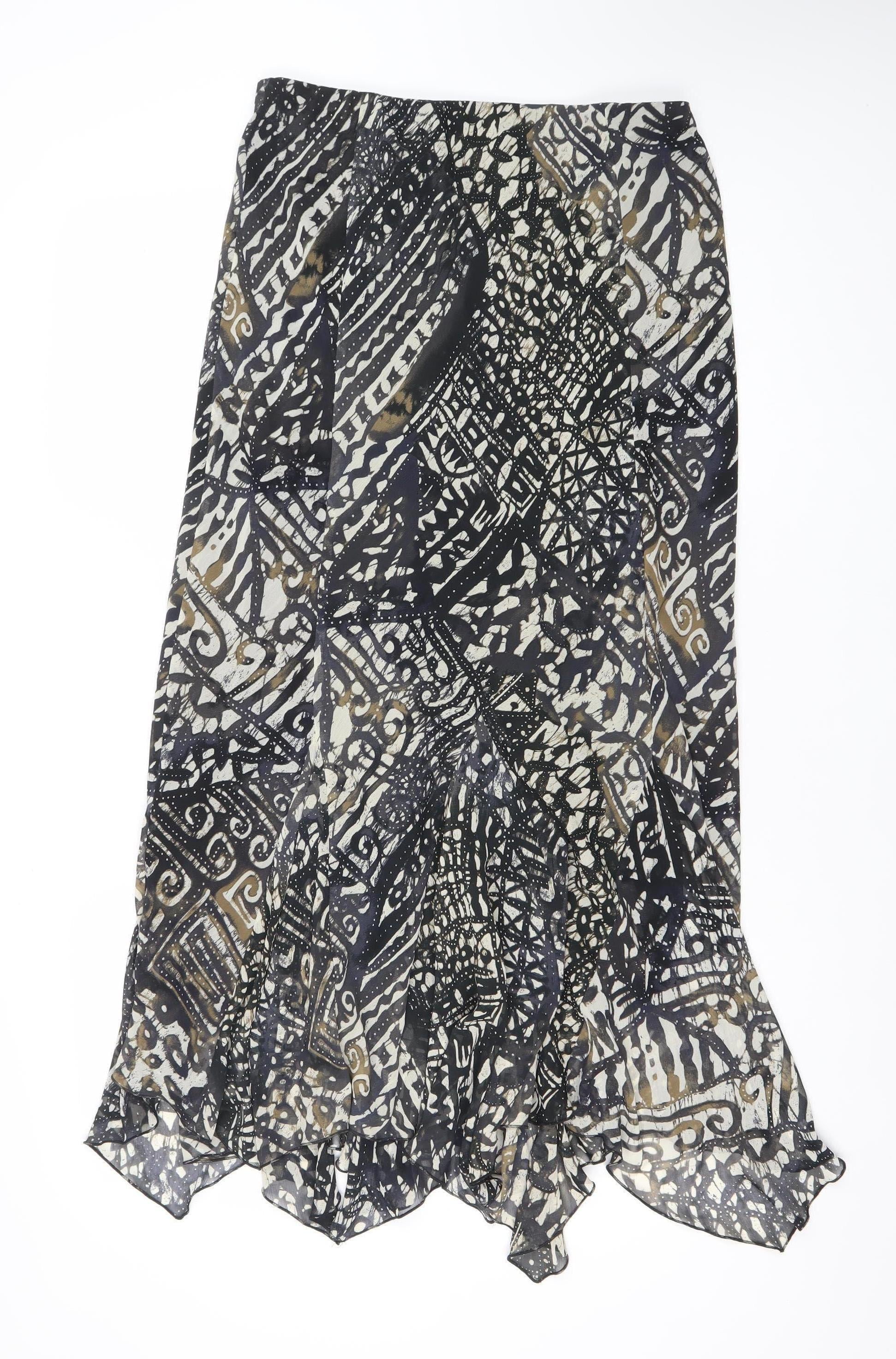 Marks and Spencer Womens Black Beige Geometric Chiffon Skirt Size 12