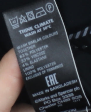 - Material Breakdown: 63% Polyester 33% Viscose 4% Elastane
